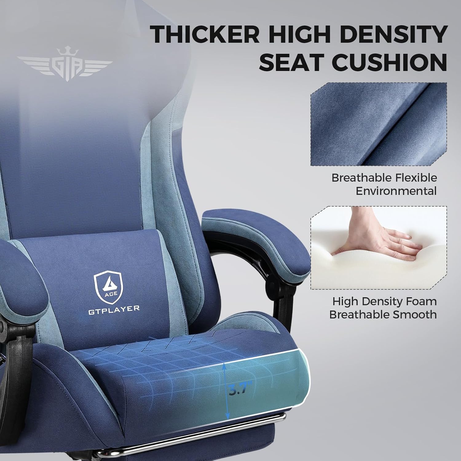 GTPLAYER Gaming Chair Fabric with Footrest, Big and Tall Game Chair High Back Computer Office Chair with Lumbar Support for Adults, Ergonomic Swivel Games Chair with Cushion Gaming Dark Blue