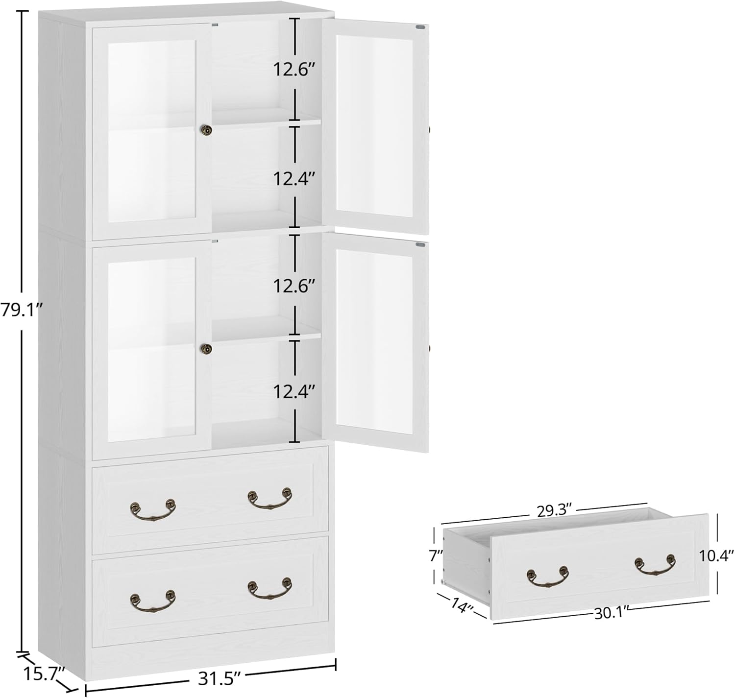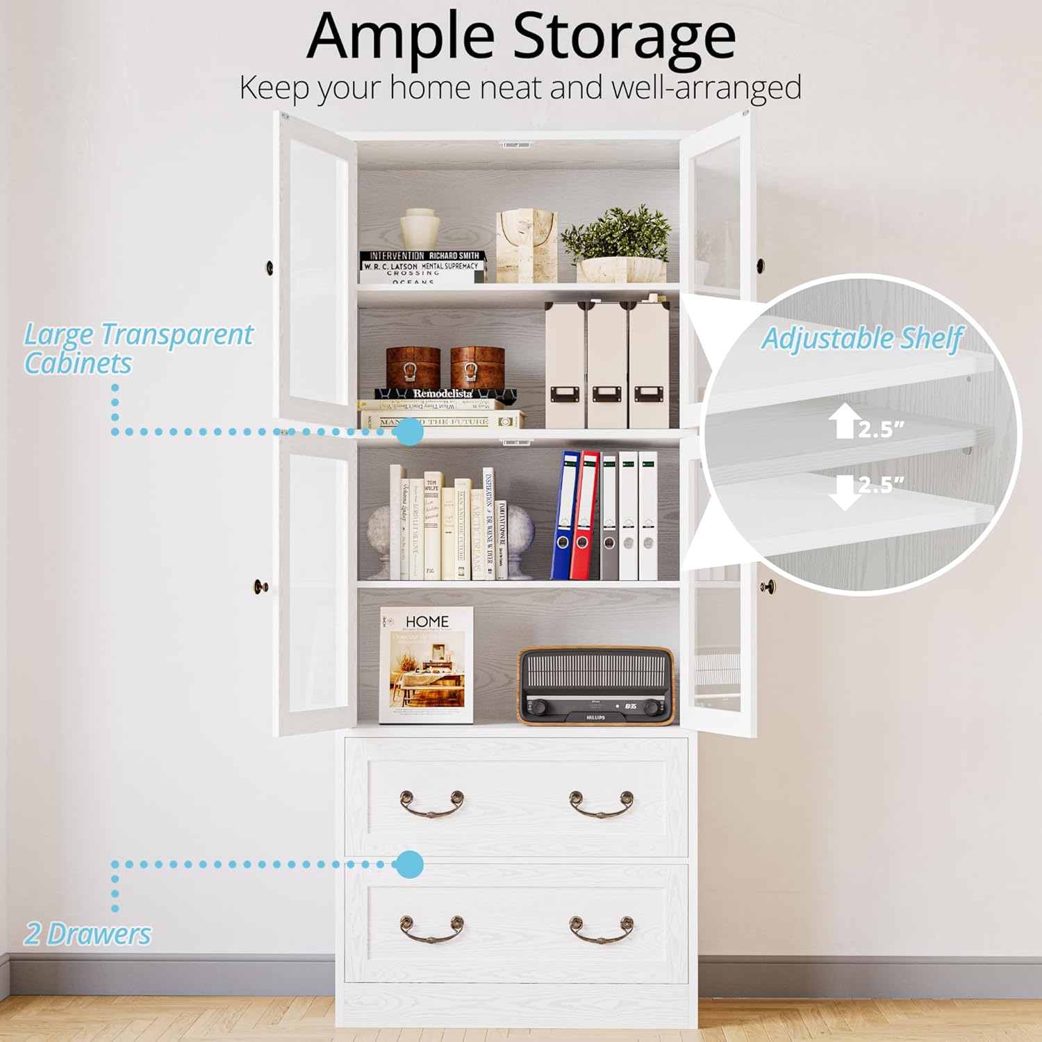 IRONCK Bookshelves and Bookcases, Bookshelf with 2 Drawers, 79.1" Inch Tall Bookshelf, 4 Tier Bookcase with Acrylic Doors, Large Storage Cabinet for Home Office, Living Room, Kitchen