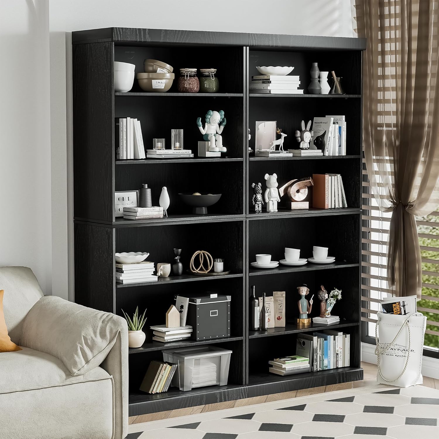 72" Wooden Book Shelf, 5 Shelf Bookcase, Modern Bookshelf with Adjustable Shelf for Home Office, Study Room, Black