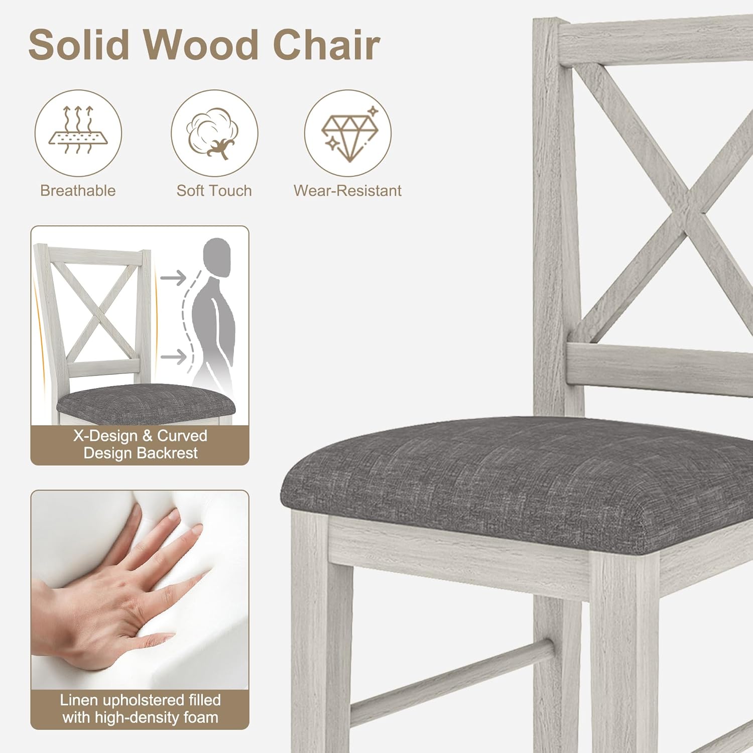 5-Piece Dining Table Set for 4, Solid Wood Kitchen Table Set with 4 Upholstered Dining Chairs, 47'' Farmhouse Structure Table & Chair Set for Kitchen, Dining Room, Restaurant, Washed Gray