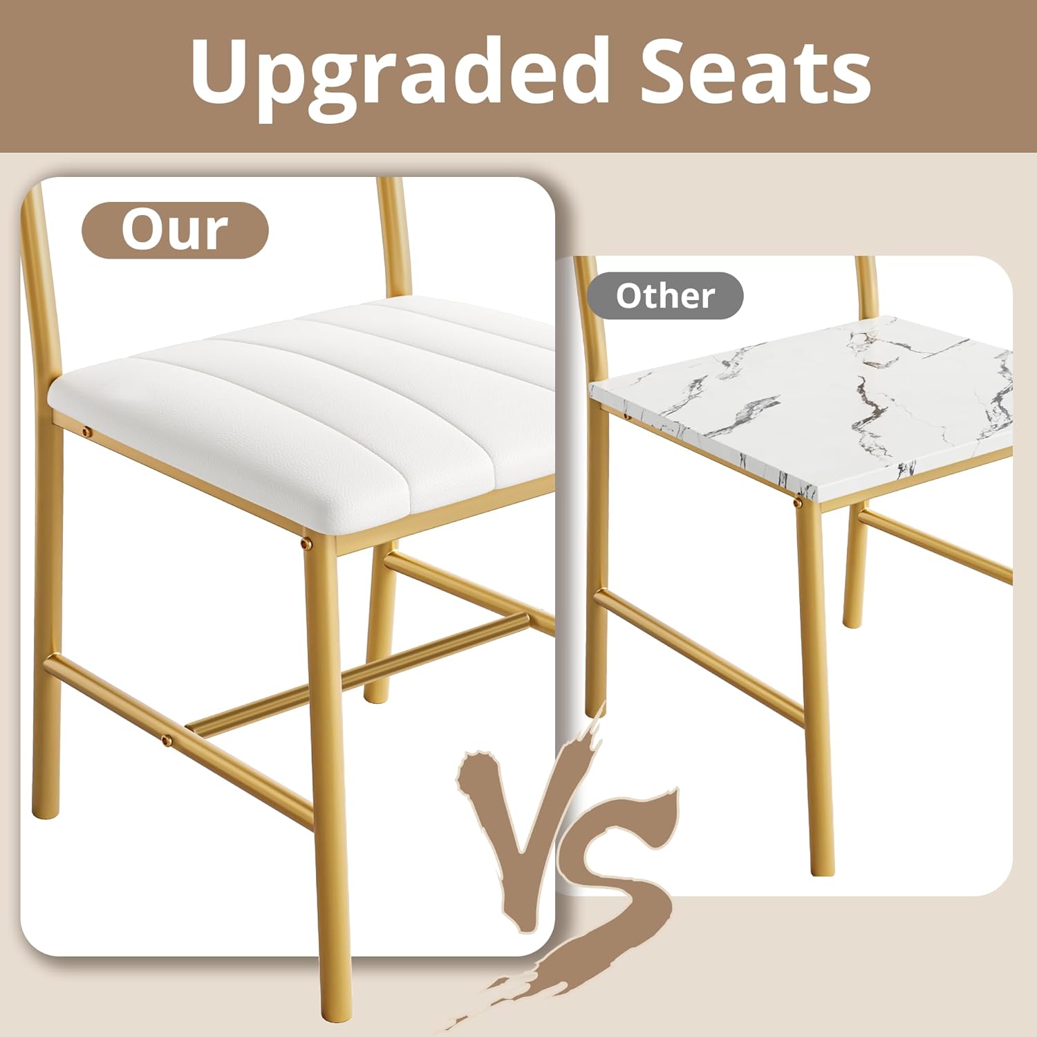 IRONCK Dining Table Set for 4, Kitchen Table with Upholstered Bench and 2 Chairs, Kitchen Table and Chairs Set for Small Space, Apartment, White & Gold