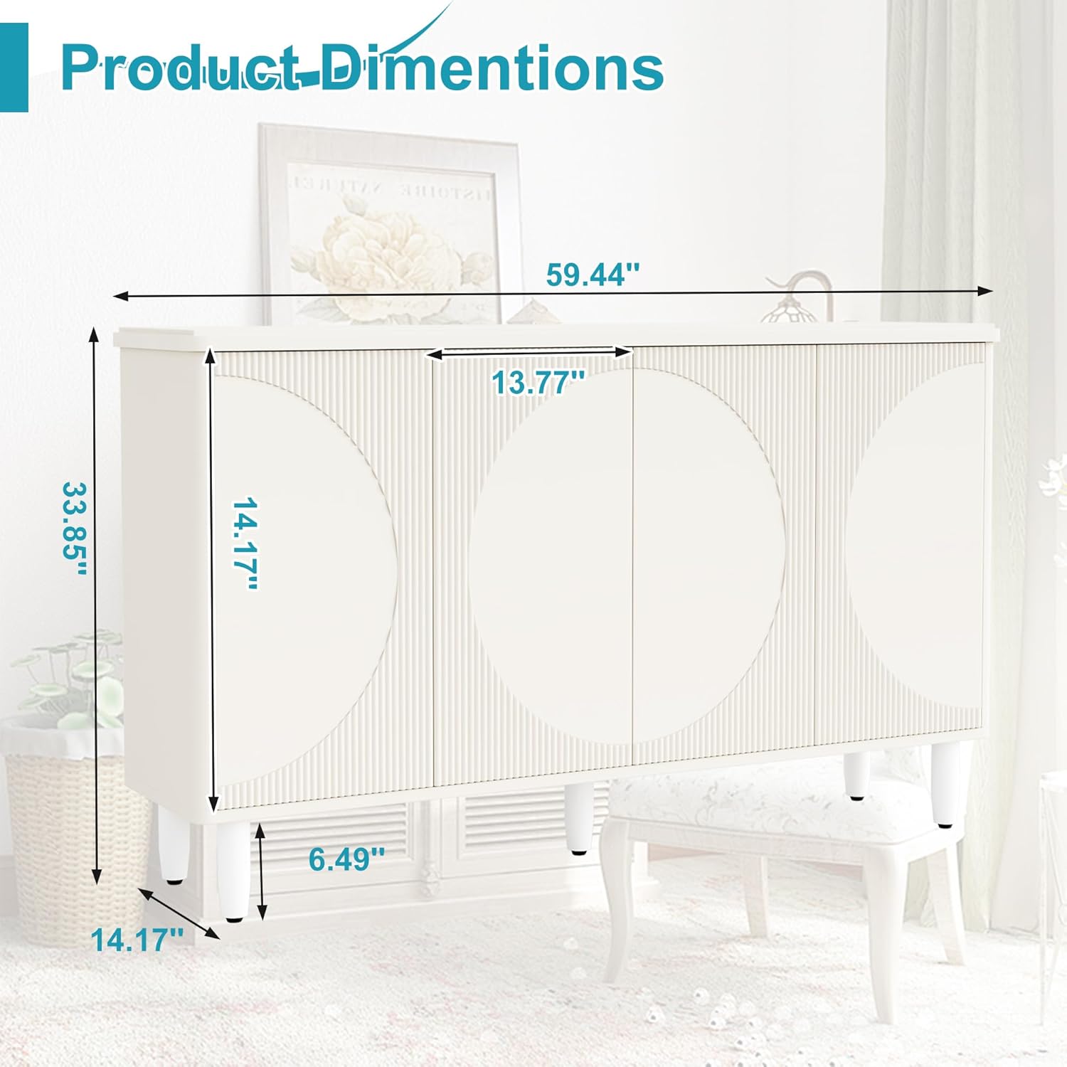 59.4" Sideboard Buffet Cabinet with Storage, Kitchen Buffet Storage Cabinet with Doors & Shelves, Modern Sideboard for Living Room, Kitchen, Hallway, White