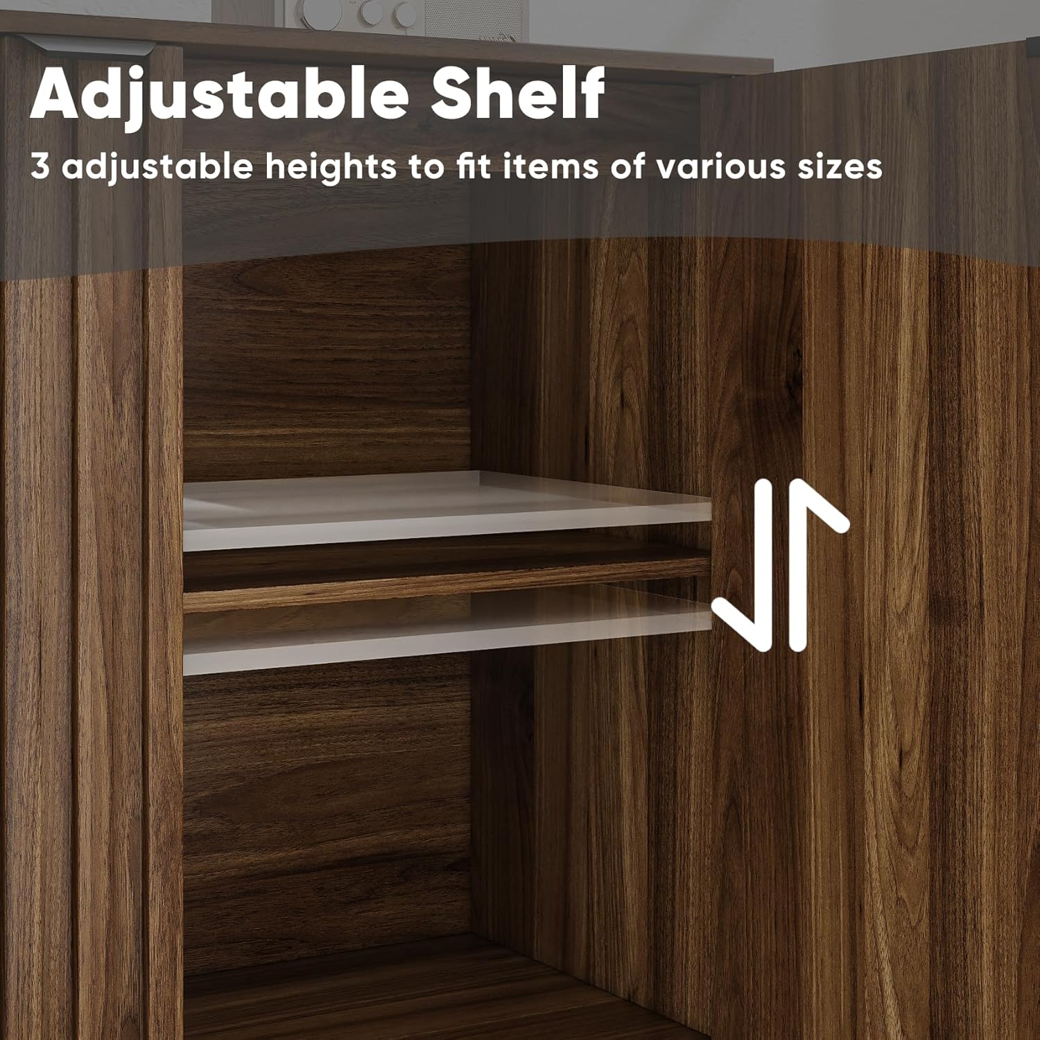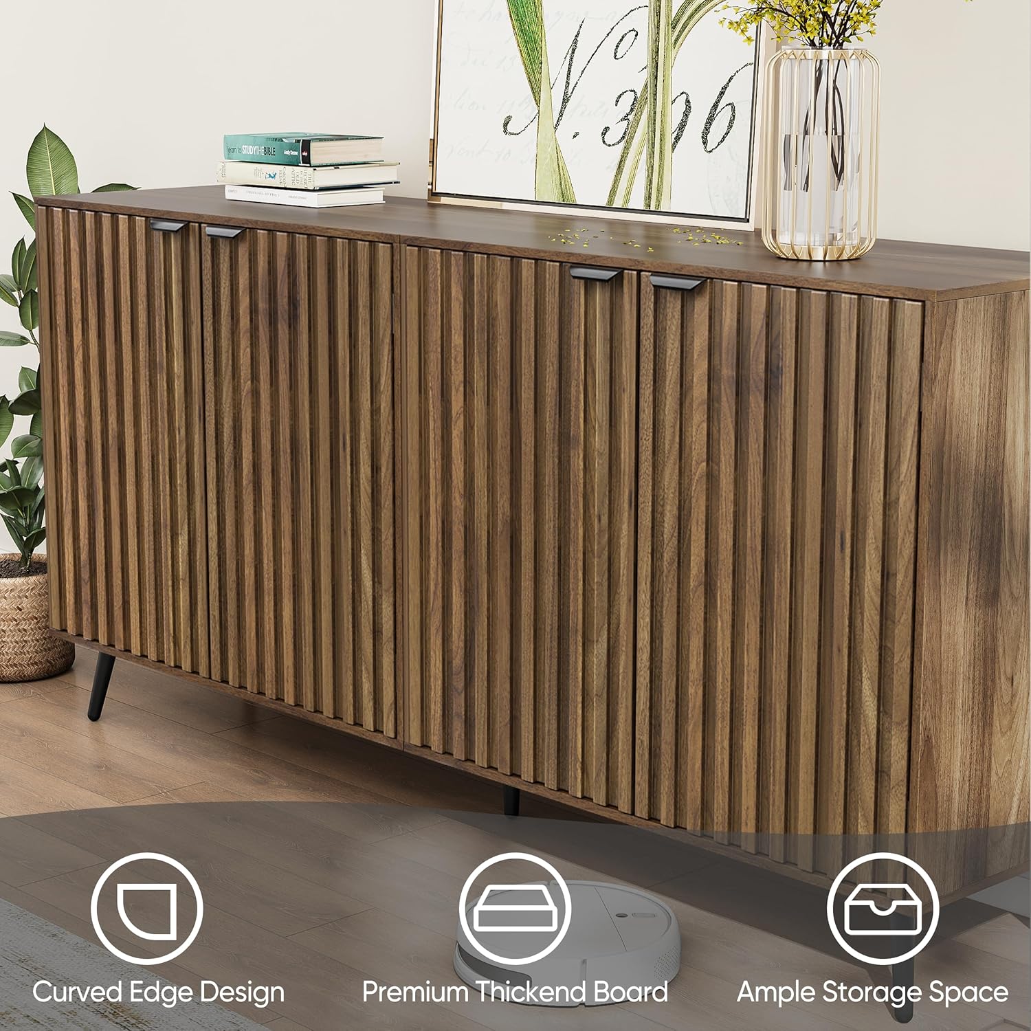 Smuxee 63" Fluted Sideboard Cabinet, Freestanding Walnut Buffet Cabinet with Adjustable Shelf, Wood Storage Cabinet for Living Room, Entryway, Hallway