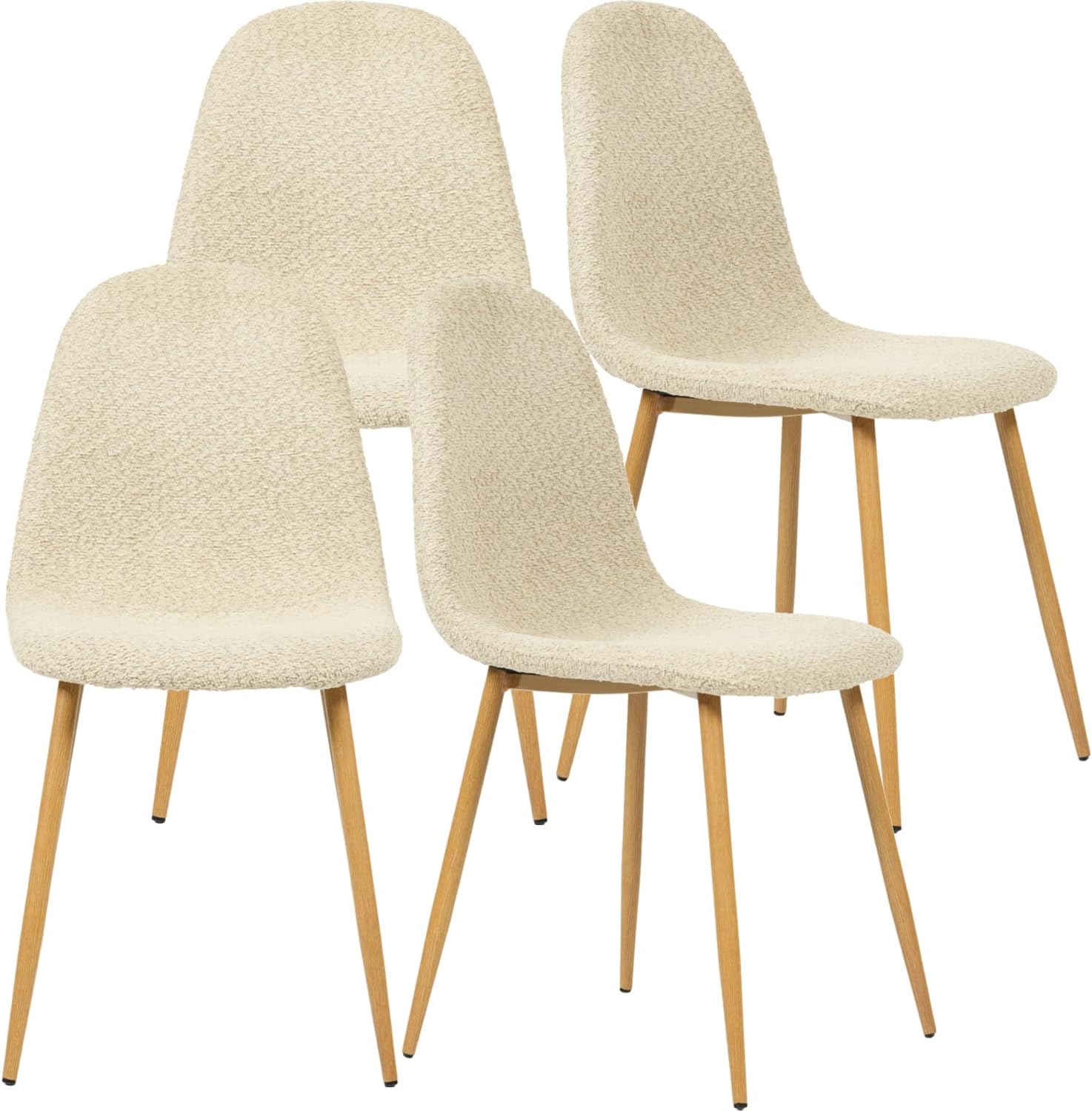FurnitureR Dining Chairs Set of 4, Upholstered Chenille Fabric Dining Room Seating with Sturdy Metal Legs, Armless Mid-Back Side Chairs for Kitchen, Living Room, Bedroom, Home Office, Beige Cream