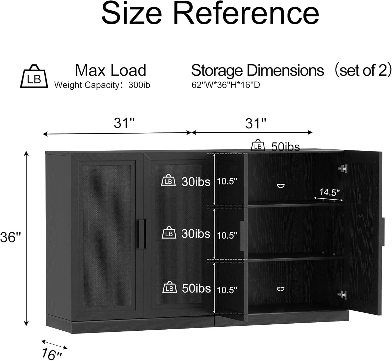 - 【Practical Storage】 Measuring 36"H x 62"W x 16"D, this 4-door sideboard provides smart storage without taking up too much space. Ideal for keeping dinnerware, glassware, or daily essentials neatly organized and dust-free.