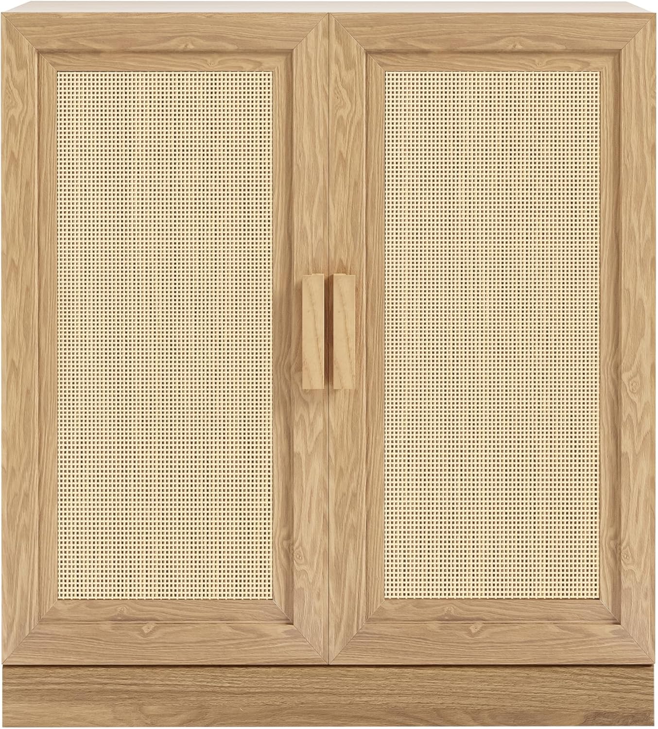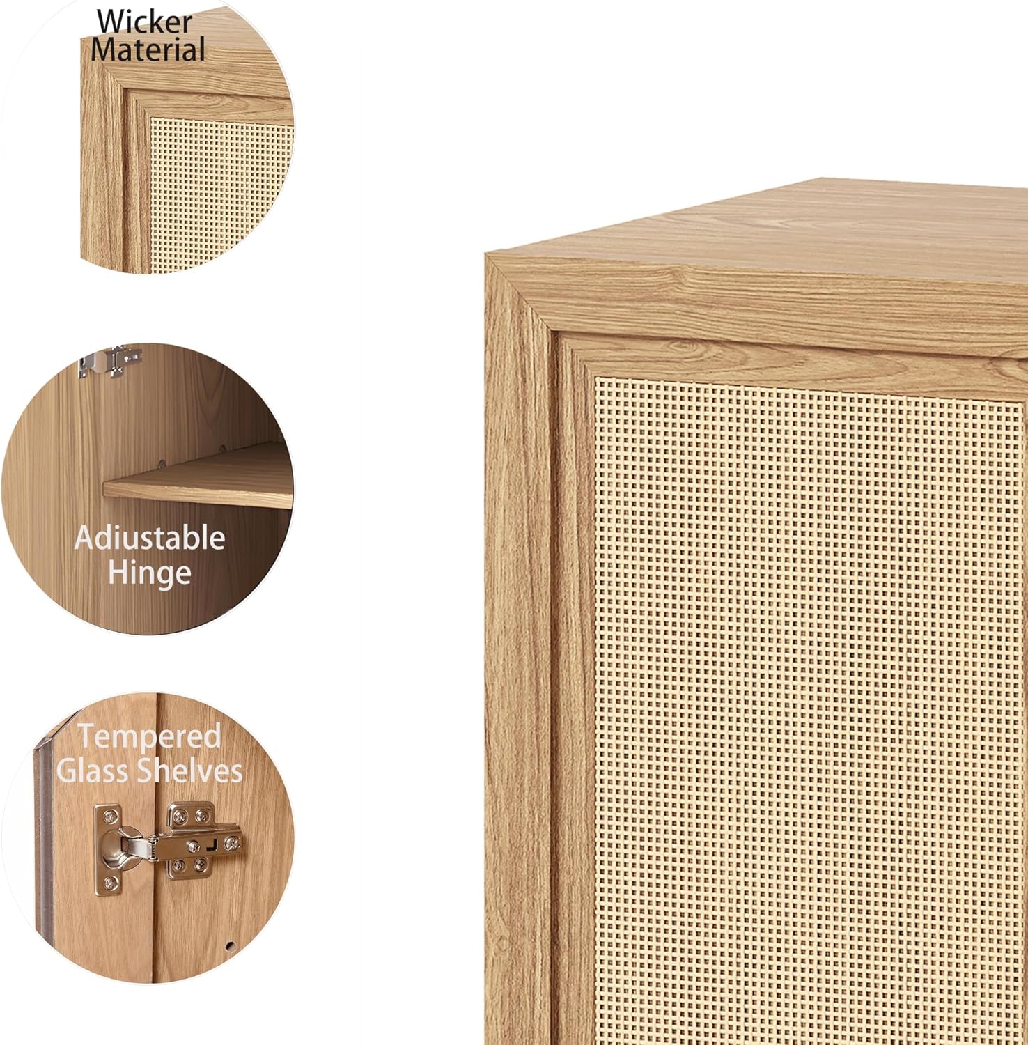Buffet Cabinet, 2-Doors Sideboard Cabinet with Rattan Panels, Buffet Console Accent Table for Hallway Entryway Dining Room, 36", Oak