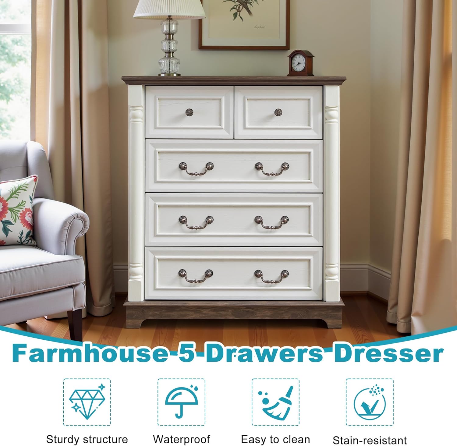 - Ample Storage Space: Designed with 5 smooth-gliding drawers, it offers generous capacity for tableware, linens, dining essentials, or household items, keeping your home well-organized.