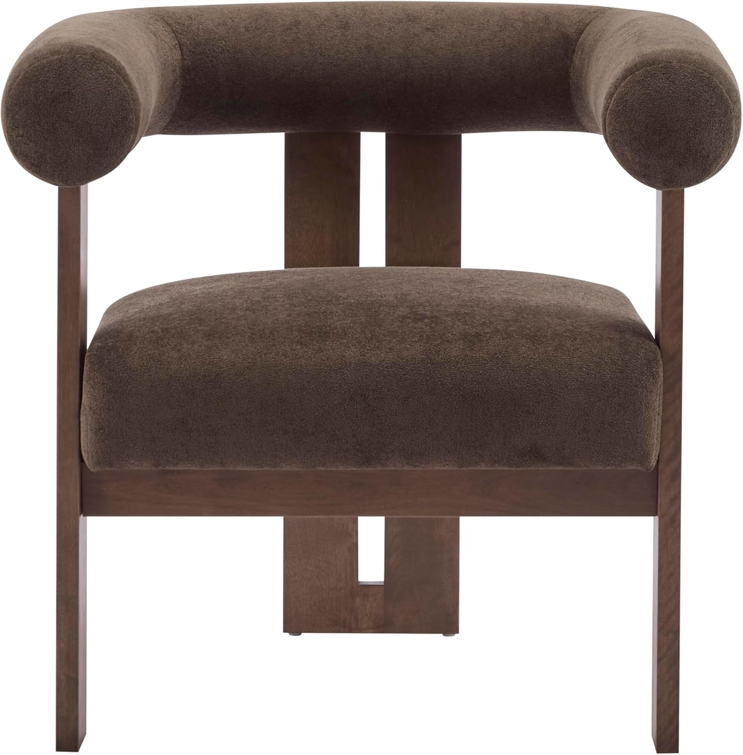 Christopher Knight Home Rones Modern Velvet Upholstered Accent Chair, Wooden Living Room Club Chair with Curved Backrest, Minimalist Bedroom Comfy Reading Chair, Thick Padded Seat, Dark Brown+Walnut