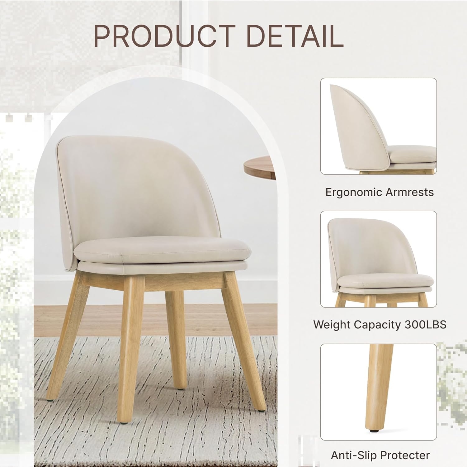 Wooden Dining Chairs Set of 4, Faux Leather Upholstered Modern Dining Room Chairs with Double-Layer Thick Seat Cushion & Ergonomic Backrest for Restaurant, Kitchen and Café, Beige, 2 Boxs