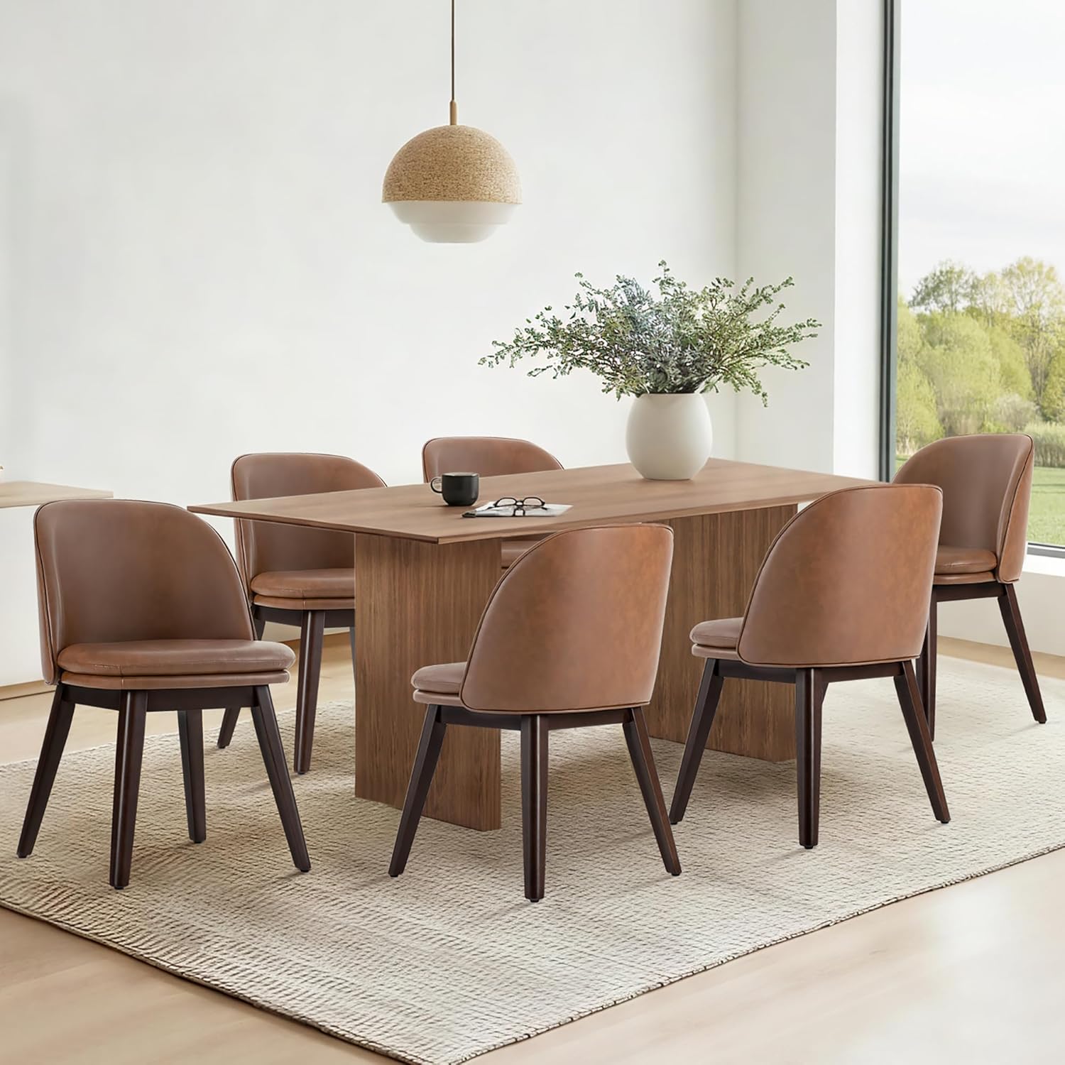 Wooden Dining Chairs Set of 4, Faux Leather Upholstered Modern Dining Room Chairs with Double-Layer Thick Seat Cushion & Ergonomic Backrest for Restaurant, Kitchen and Café, Brown, 2 Boxs