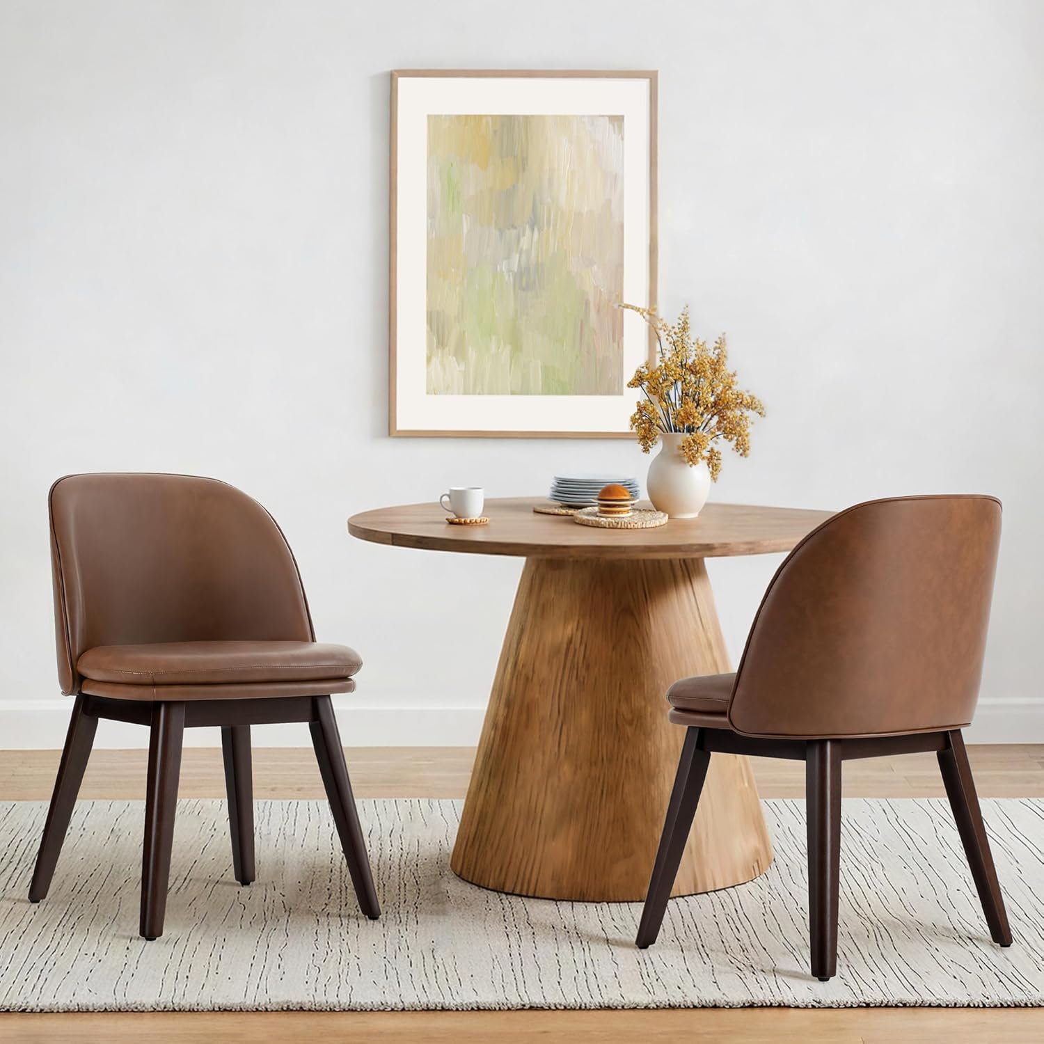 - 【PLUSH & EASY-CLEAN FAUX LEATHER】Experience superior comfort and convenience with these upholstered dining chairs, featuring soft yet durable faux leather. The plush cushioning offers lasting support, ideal for long meals or casual seating in your dining room. Spills wipe away instantly with a damp cloth—perfect for busy homes seeking dining chairs that stay pristine with minimal effort.