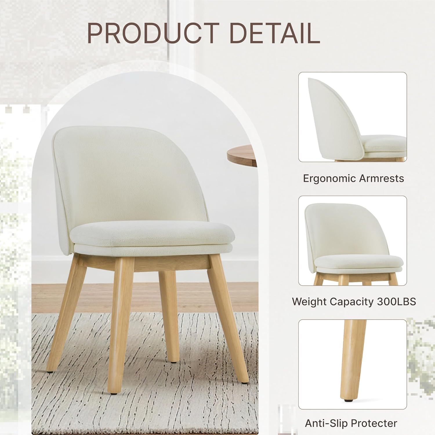 - 【SOLID & SAFE WOOD CONSTRUCTION】Built with a mix of solid and engineered wood, these sturdy dining chairs support up to 300 lbs. Kiln-dried for enhanced durability and featuring reinforced corner blocks, they meet EPA TSCA Title VI standards for healthy, reliable use in both homes and commercial settings.