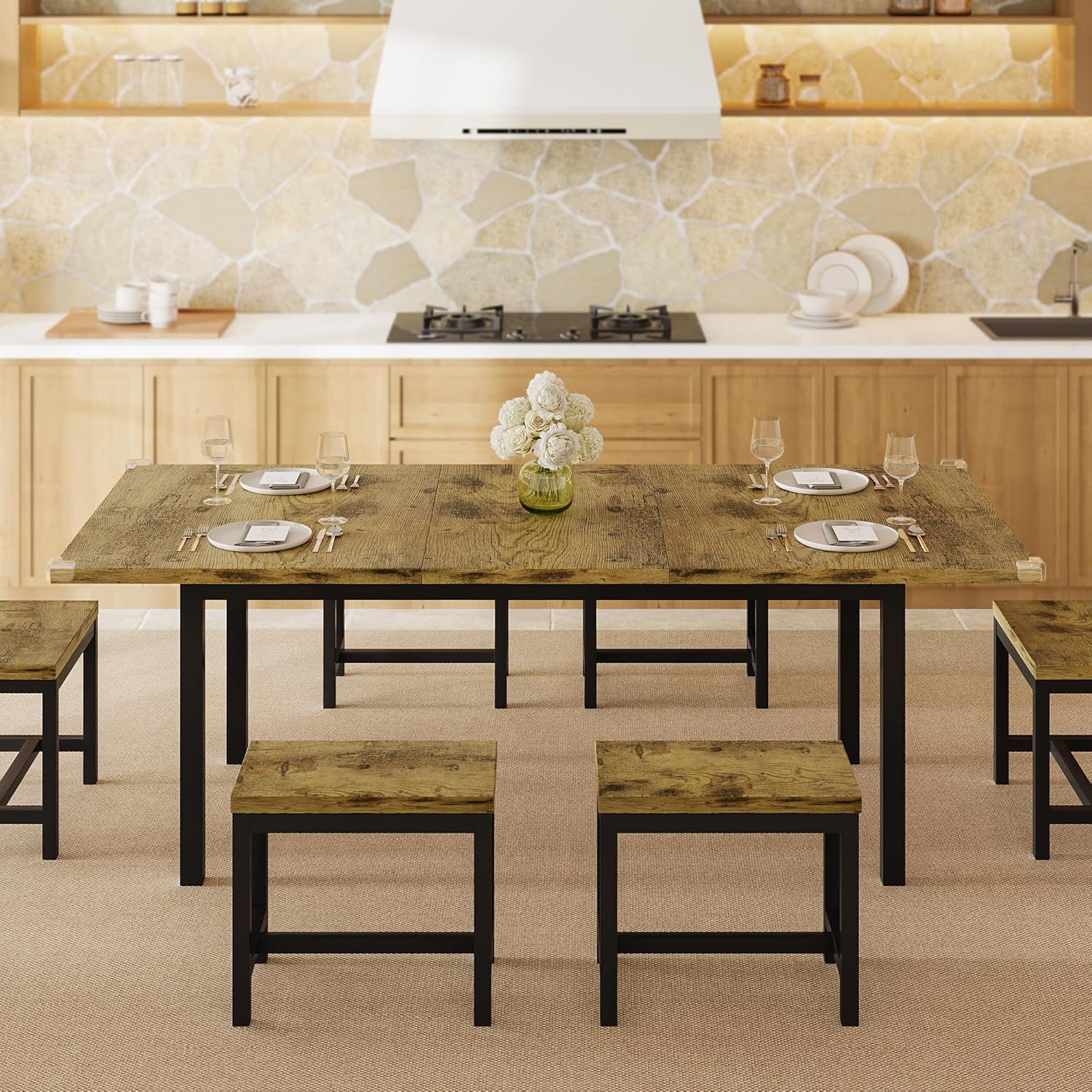 - Safety Thoughtful Design: Safe corner protectors ensure a hassle-free dining experience for all, and easy-to-maintain surfaces that require little effort to keep them looking great