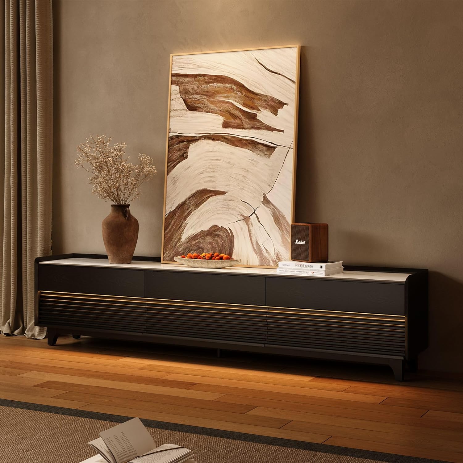 - Fully Assembled TV Console: This sintered stone tv stand with Legs comes fully assembled, saving you time and effort. No complicated instructions or tools required, upon receiving it, you only need to screw the middle support foot into the corresponding hole