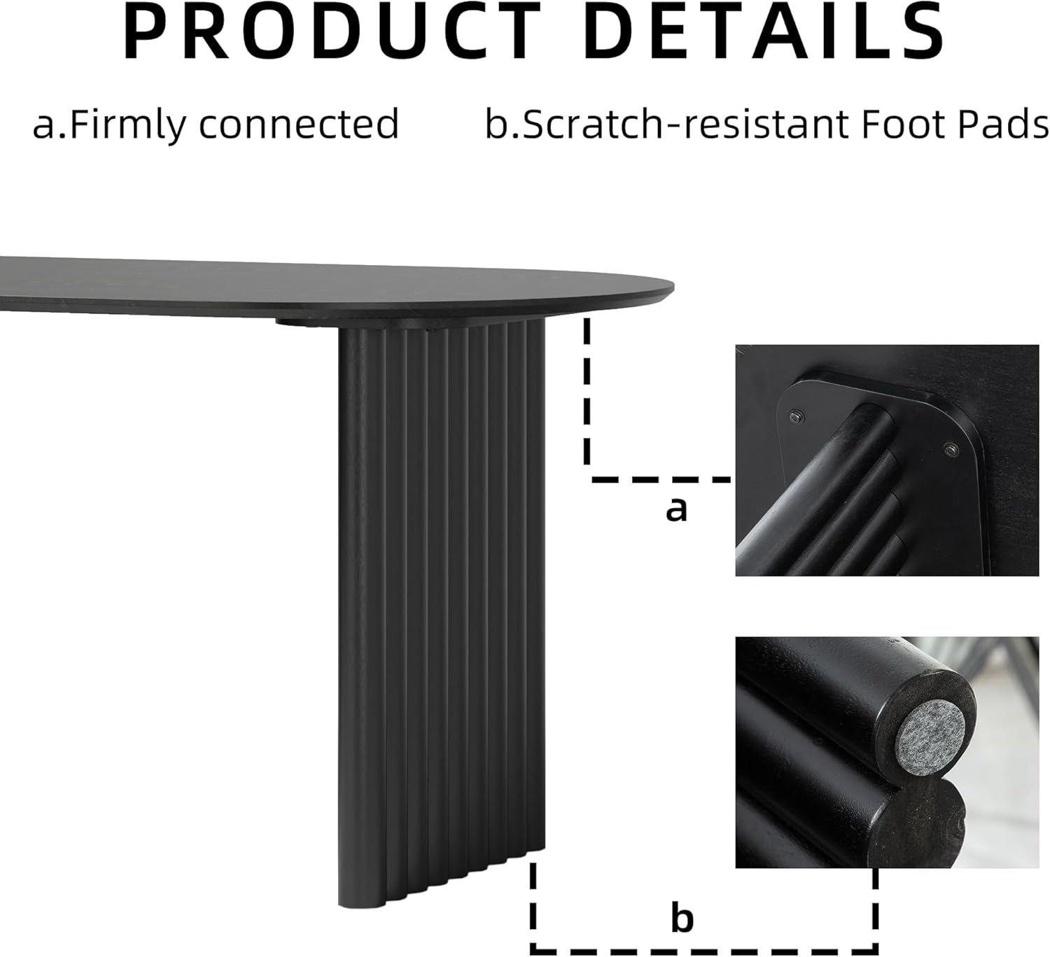 Casaphoria Wood Kitchen Table Set with 4 Chairs, 79" Dining Kitchen Table & Chairs Set for 6-8, Modern Farmhouse Oval Dining Table for Living Room, Easy Assembly, Black