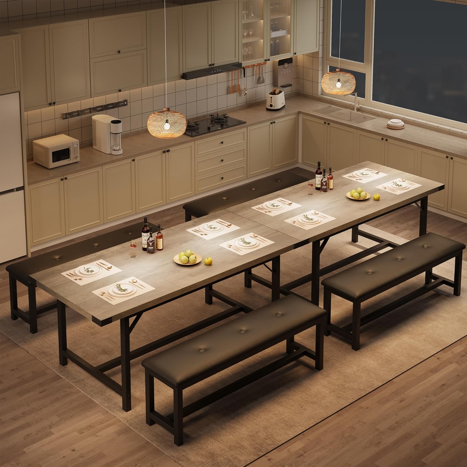 - 2. Space-Saving: This extendable dining table set for 6 conveniently shrinks back into a compact size for easy storage. The space-saving design allows the benches to be neatly tucked under the table when not in use, freeing up valuable floor space. Ideal for apartments and smaller homes, this adaptable set is perfect for daily dining as well as entertaining guests. Keep your living area tidy and organized with this highly functional and smart solution