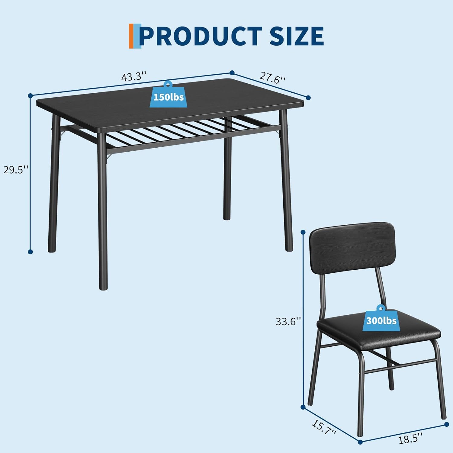 GarveeHome Dining Table Set for 4 with Storage Rack, 5-Piece Kitchen Table and Upholstered Chairs of 4, Wood Tabletop & Heavy-Duty Metel Frame, Dining Room Set for Small Space, Apartment, Black