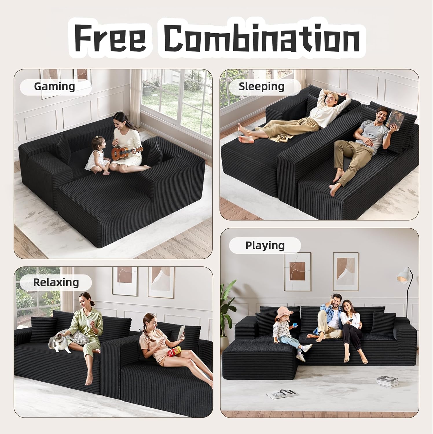 - Versatile Modular Design: This is not just an L-shaped modular sofa, but a versatile solution. You can position the modular boneless compression sofa as an L-shape, sofa bed, or other configuration as needed.
