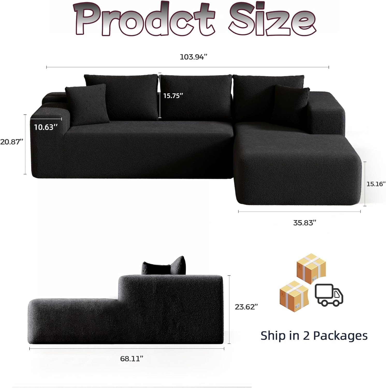 - Spacious and Practical: The L-shaped luxury combination oversized sofa measures 103.94" x 68.11" x 23.62" and has a seat depth of 25.3". Relax in a spacious space that adapts to various space needs.