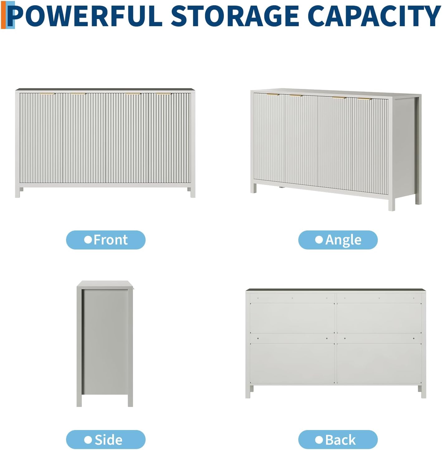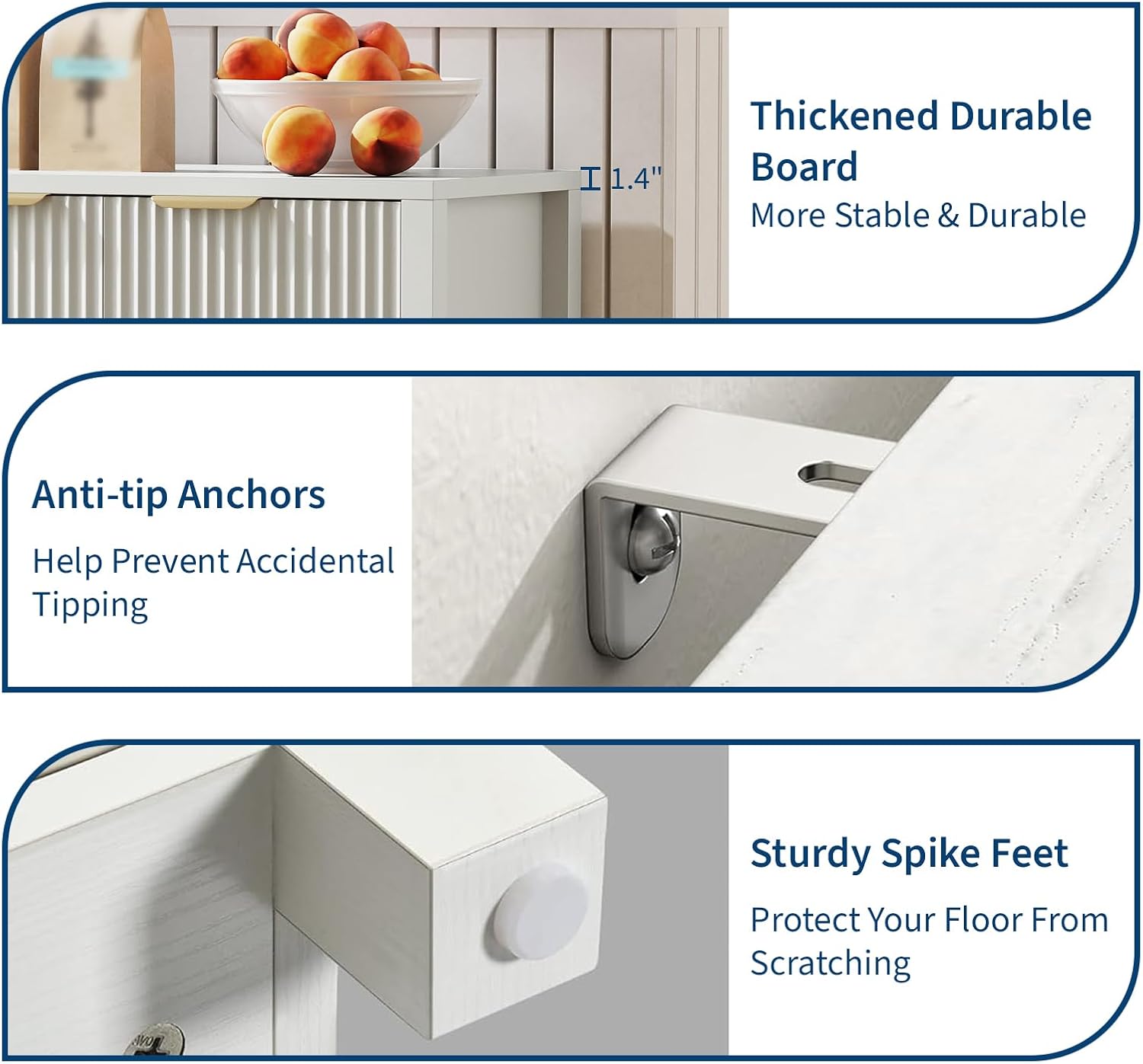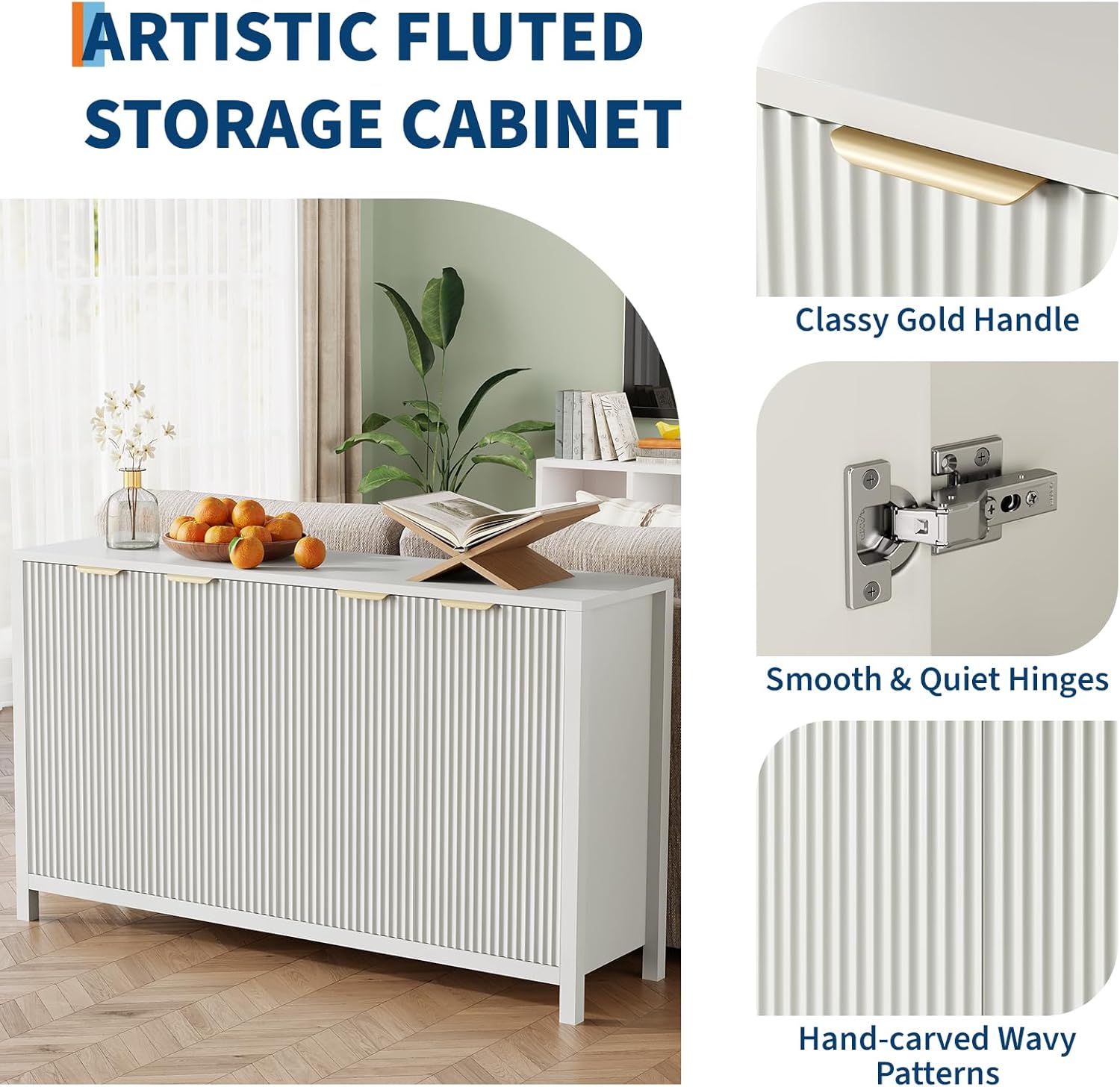 - 【ELEGANT FLUTED DESIGN BUFFET CABINET】: Featuring modern fluted panels and sleek metal handles, this buffet cabinet with storage adds style and sophistication to your dining room, entryway, or living room. The timeless design blends seamlessly with farmhouse, contemporary, and mid-century decor.