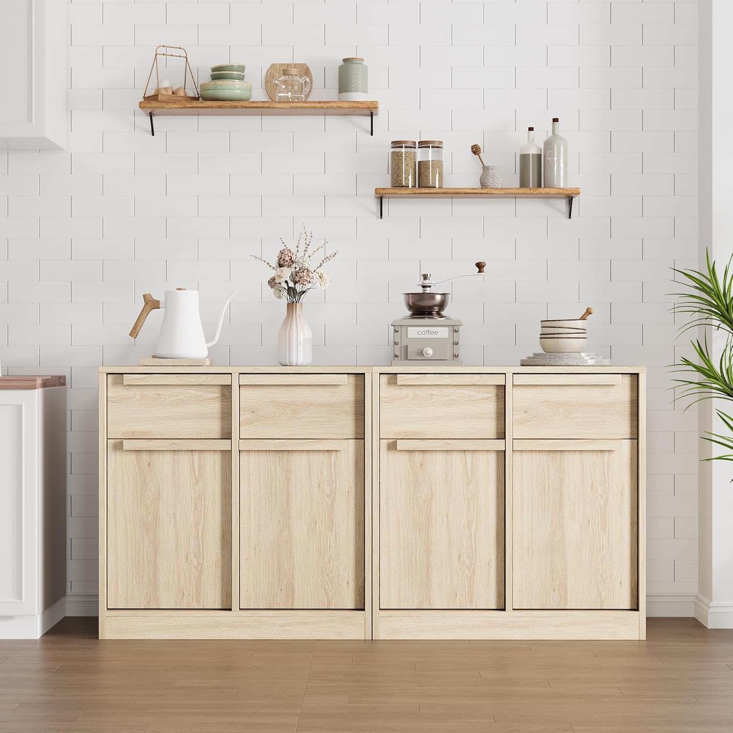 - Natural Warmth: Wood grain panels highlight the beauty of natural wood, creating an inviting atmosphere. Buffet storage cabinet is perfect for small dining areas or apartments, maximizing corner space
