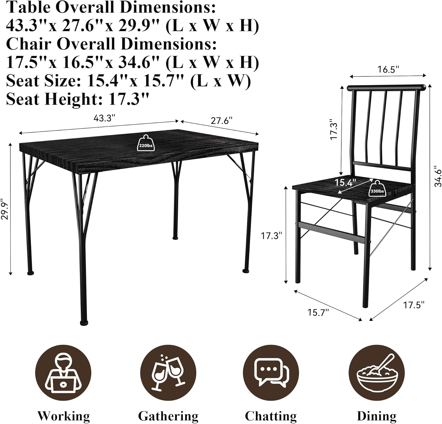 - 【Robust & Reliable】: Crafted with strong metal legs and a solid structure, this dining set ensures exceptional stability. The thick, smooth-finish planks and reinforced frame provide dependable support, with a table bearing up to 220 lbs and each chair holding 330 lbs.