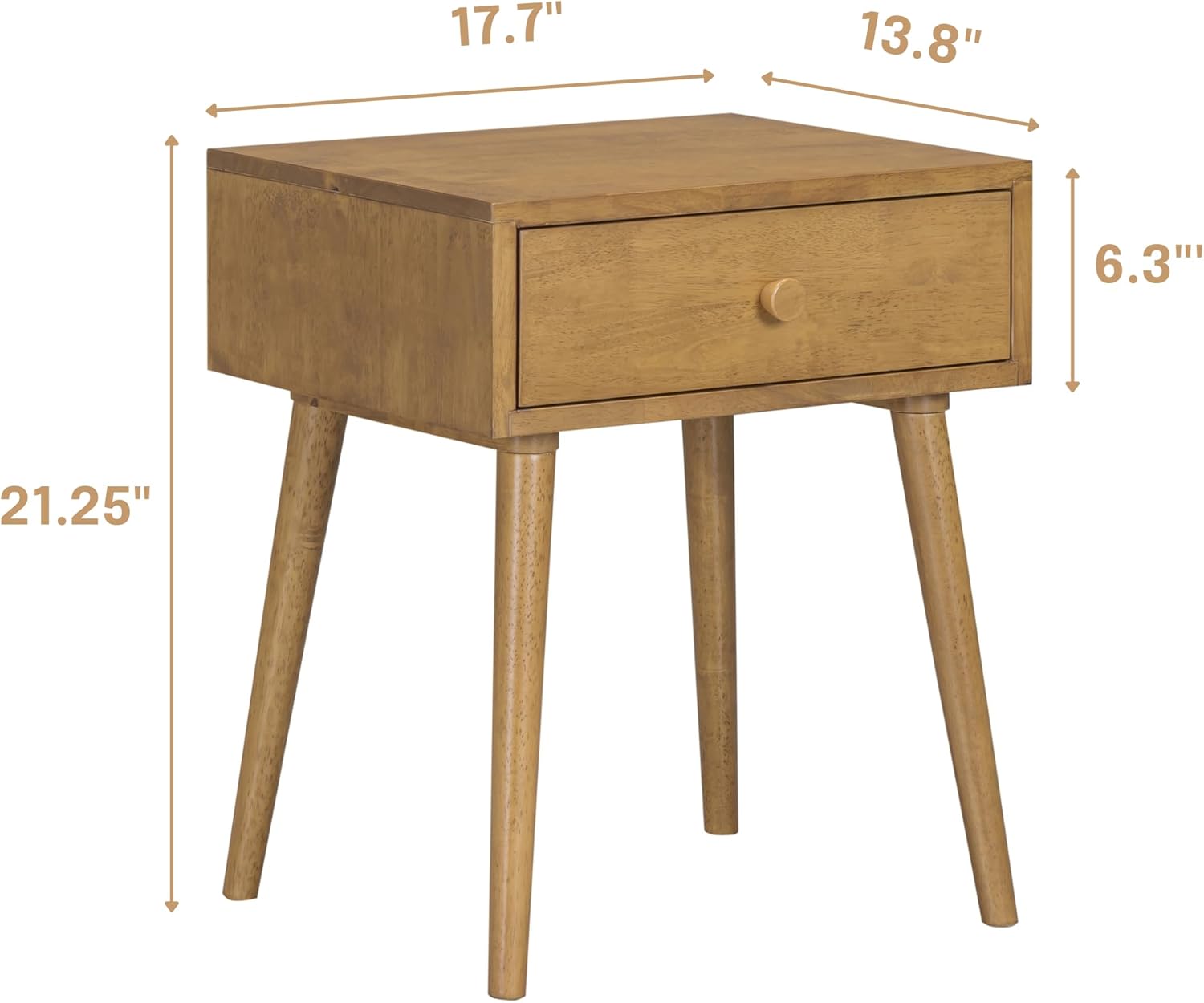 NTC Lux Solid Wood Nightstand, Mid Century Modern Side Table Bedroom, Bedside Furniture, Night Stand, End Table, Easy Assembly - Teak Look