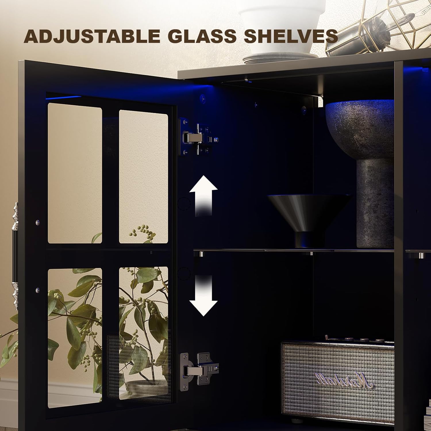 - LED Lights: The TV stand with LED light features 7 vibrant colors and 3 dynamic modes, adjustable brightness, single color, gradient, and flash modes for a customizable lighting experience