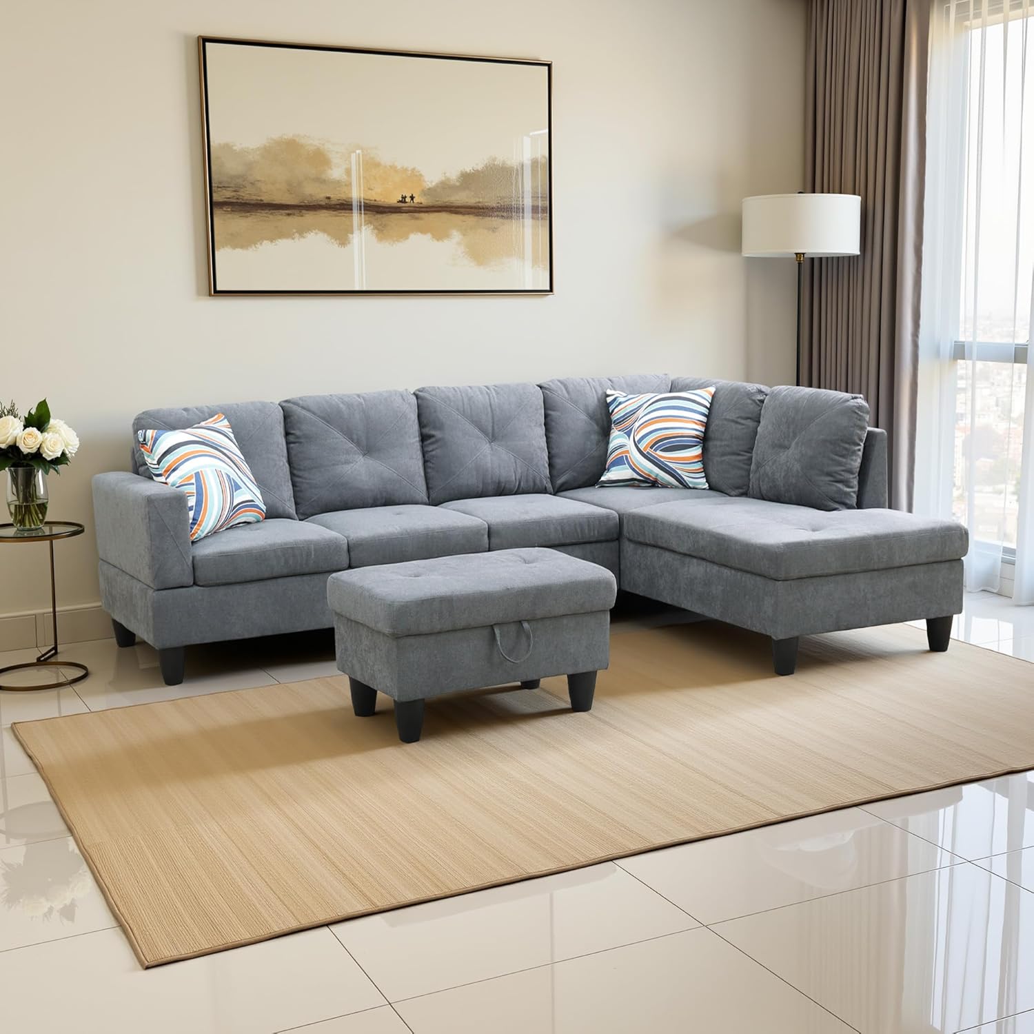 - Versatile and Practical Design: The chaise lounge setup allows for flexibility in your seating arrangement, enabling you to adjust the sofa to fit your space. The included storage ottoman adds functionality, offering a handy way to keep your living area neat and orderly.