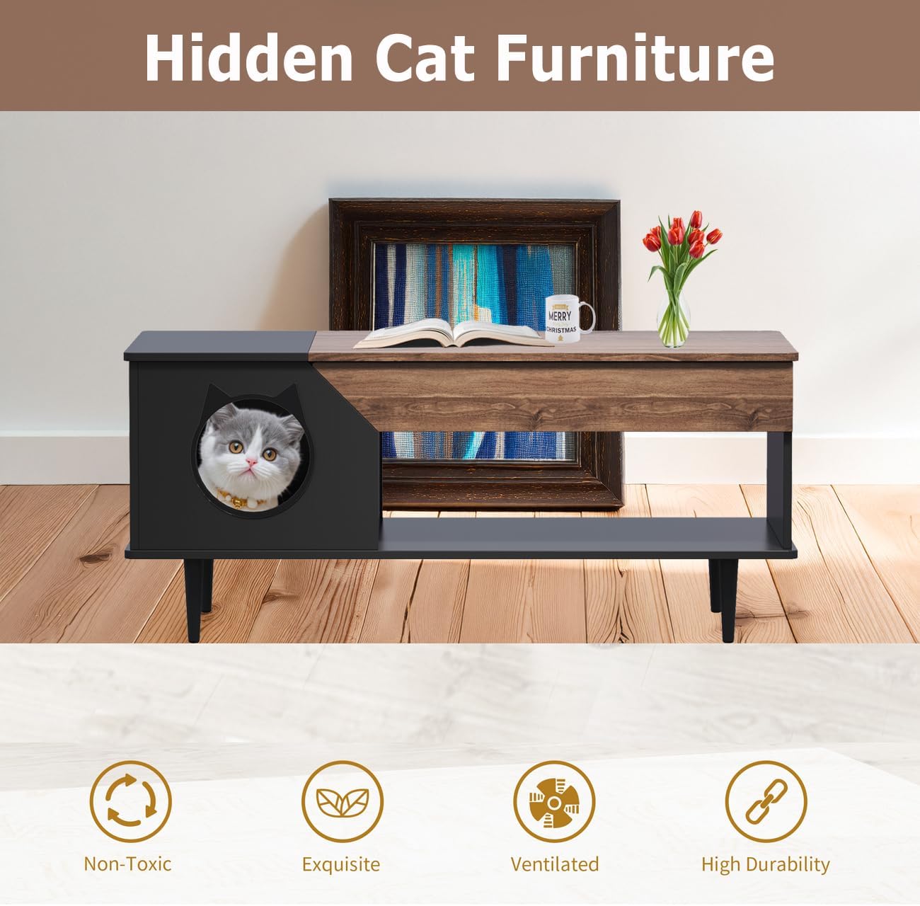 - Multifunctional Elegant Furniture: This cat table is both a litter box enclosure and a coffee table, blending in perfectly with your home decor. Not only does it provide a secluded place for your cat's litter needs, but it also adds elegance to your living space.