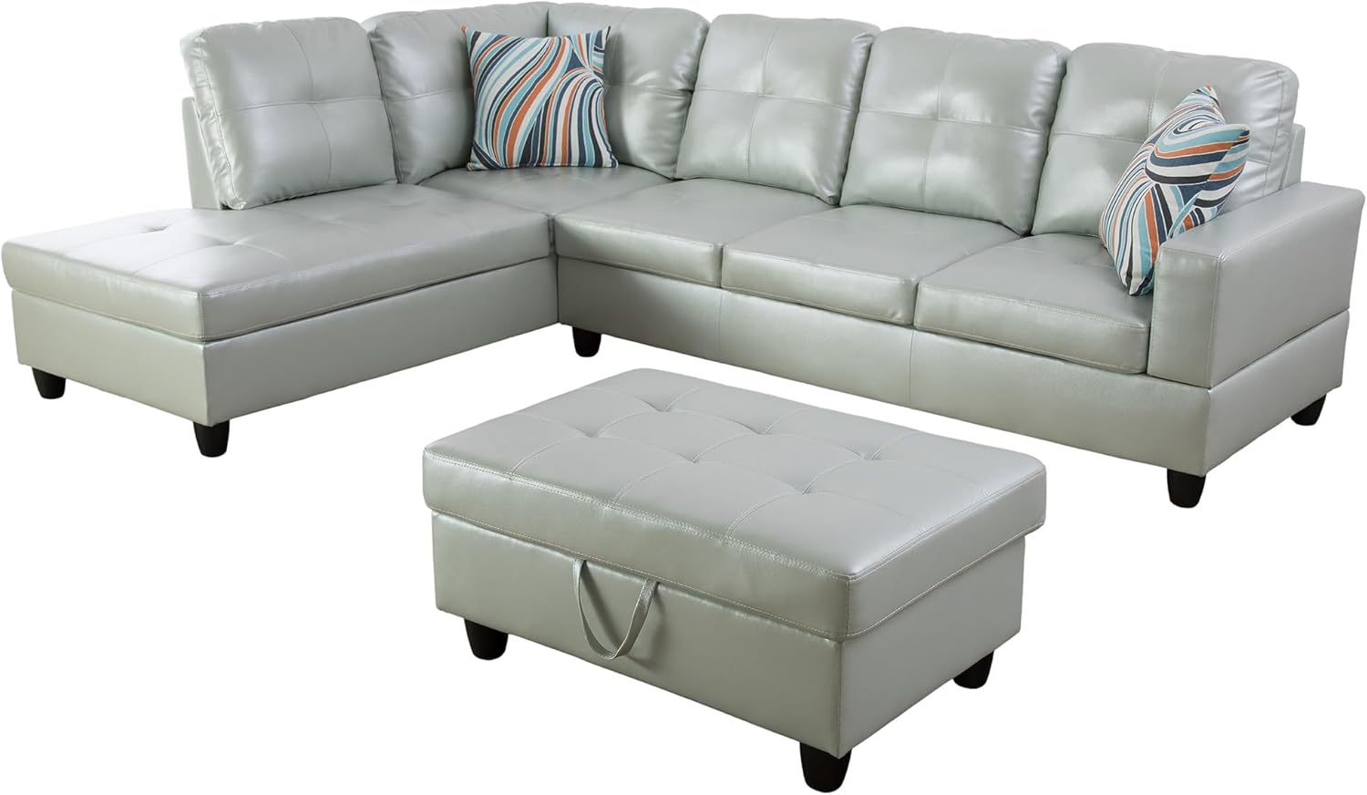 - Versatile and Practical Design: The chaise lounge setup allows for flexibility in your seating arrangement, enabling you to adjust the sofa to fit your space. The included storage ottoman adds functionality, offering a handy way to keep your living area neat and orderly.