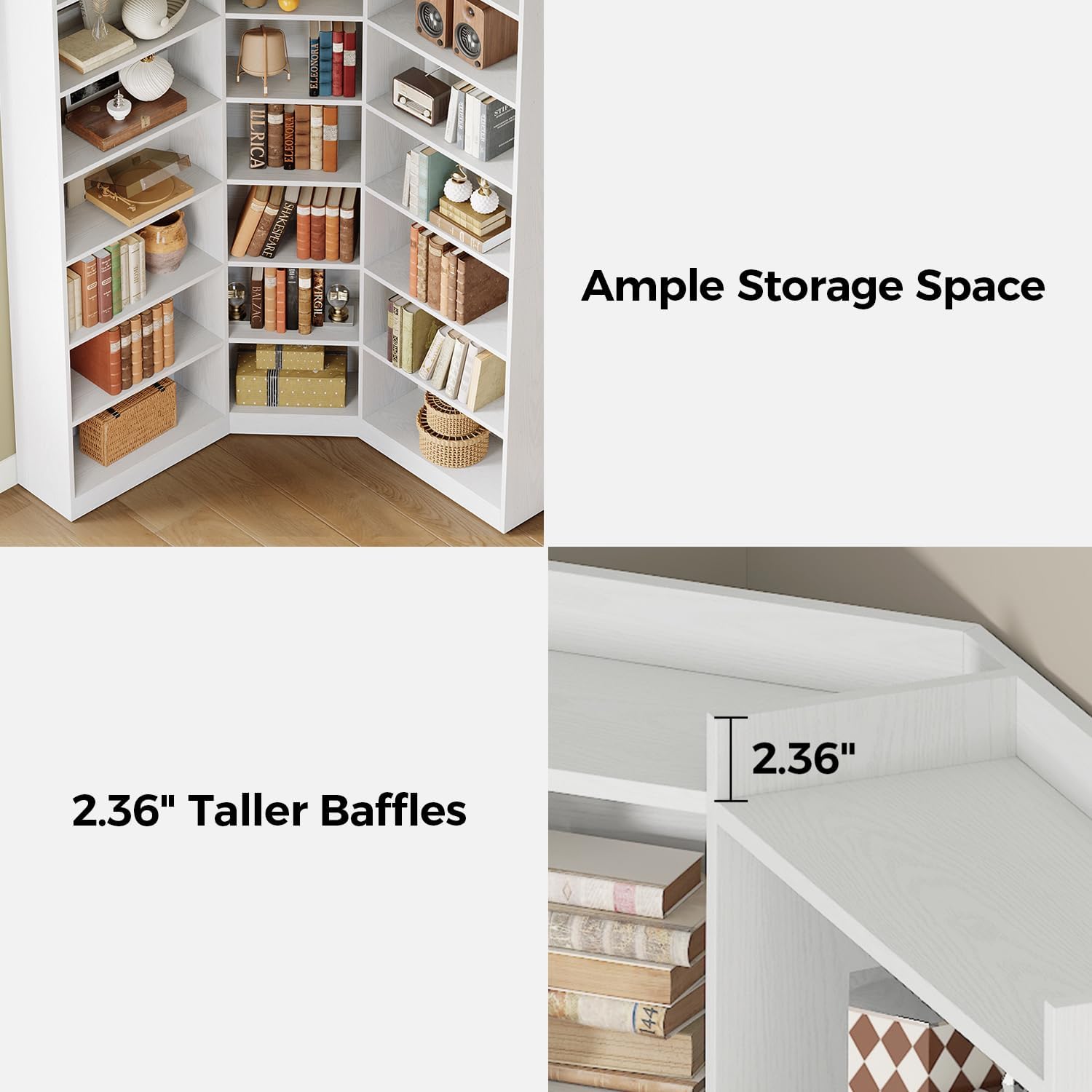 IRONCK Corner Bookshelf, 7-Tier Bookshelf with Storage, Corner Bookcases with Baffles Etagere Shelf for Living Room Home Office Bedroom, White