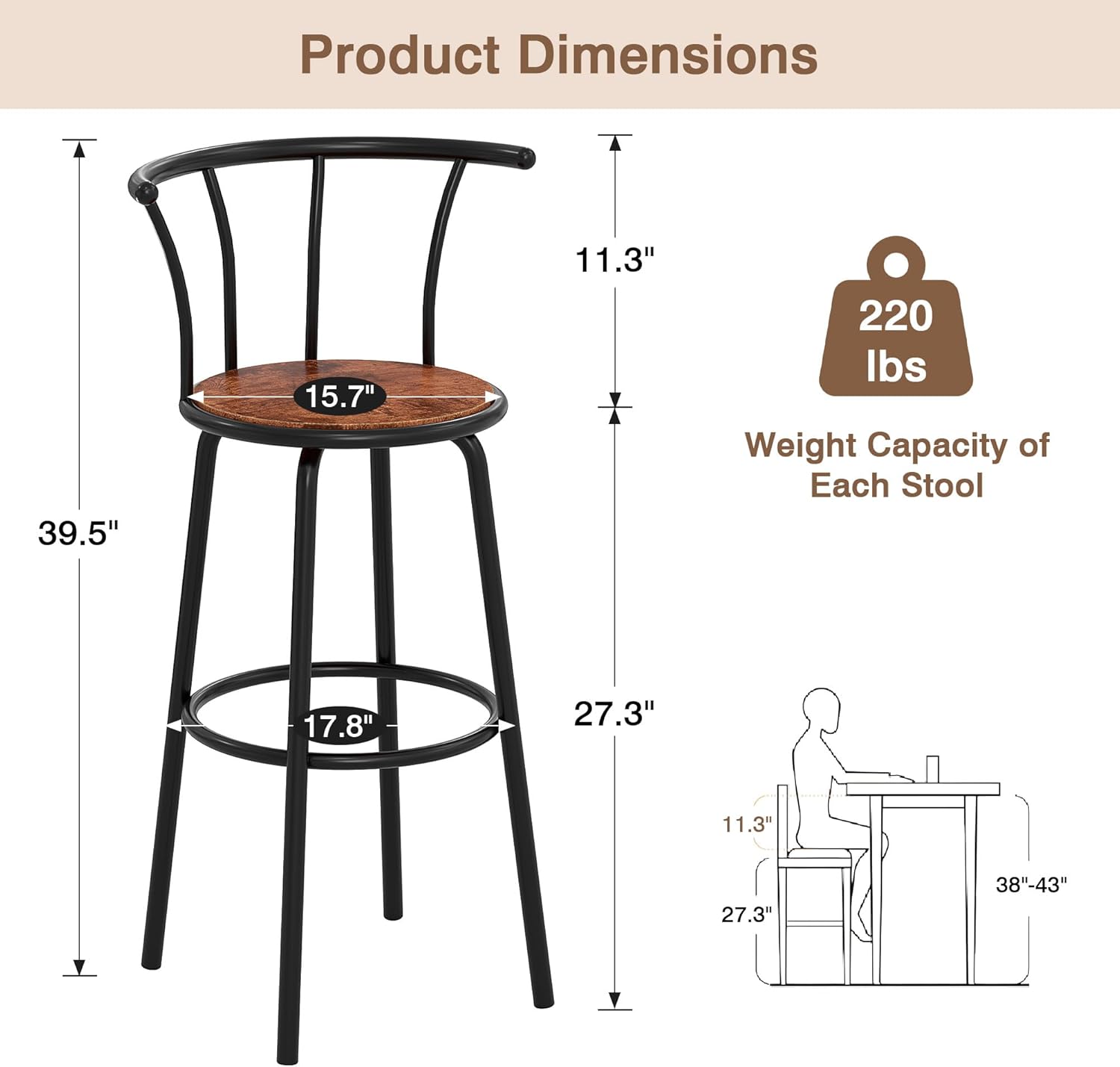 - 【Sturdy & Durable】: Made of quality MDF board and heavy duty metal frame for stability and durability - each bar stool can support up to 220 lbs. All components are coated with a high quality waterproof paint that improves abrasion resistance, scratch resistance and ease of cleaning.