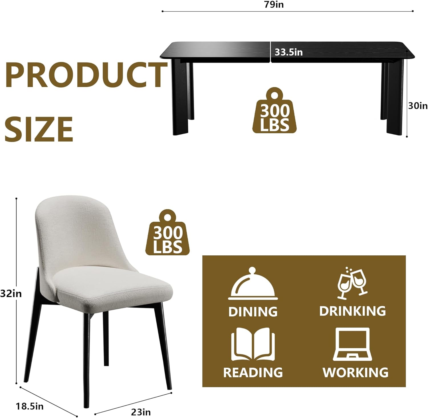 Casaphoria Wood Kitchen Table Set with 6 Chairs, 79" Rectangle Dining Kitchen Table & Chairs Set for 4-6, Modern Farmhouse Dining Table for Living Room, Easy Assembly, Black
