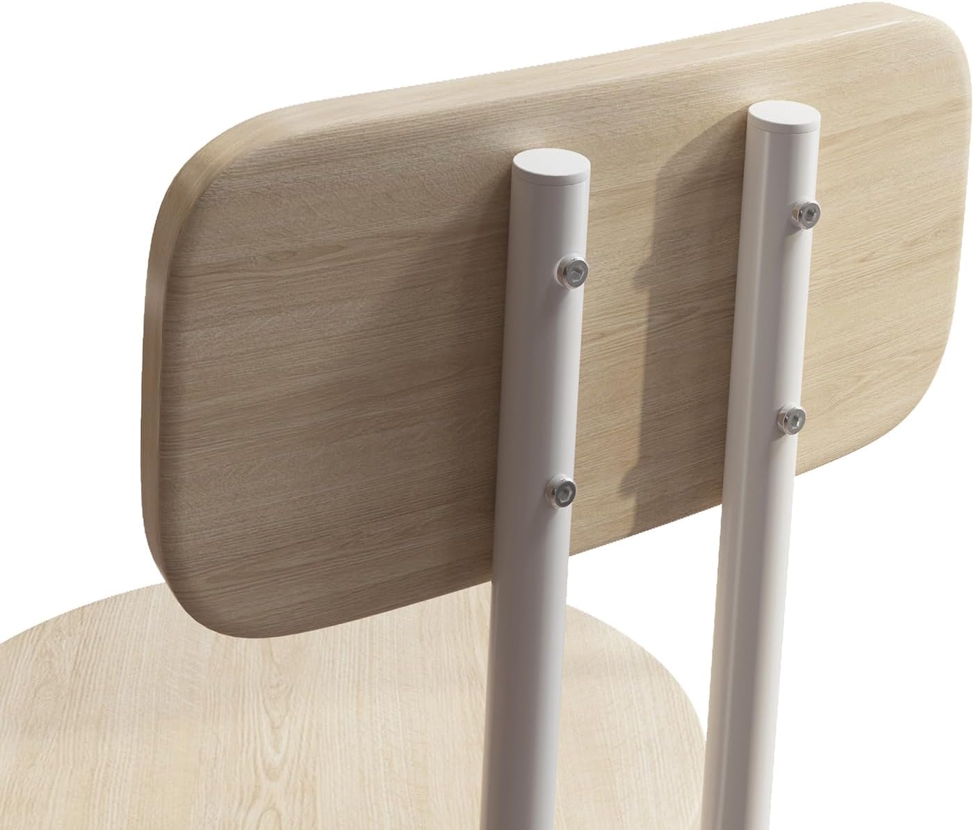 - [Comfortable 5-piece Dinning Set]: There are footrest brace bars under the seat to provide a relaxing position for your feet. And the crossbars can strengthen the stability of the stools and prevent them from falling apart. The bar stool with a looped footrest and a wooden backrest that provides lean back comfortably on the backrest. Table Dimensions: 43.3" x 23.6" x 36.2"; Weight Capacity: 130 lbs Chair Dimensions: 11.8" x 11.8" x 34.6"; Weight Capacity: 220 lbs