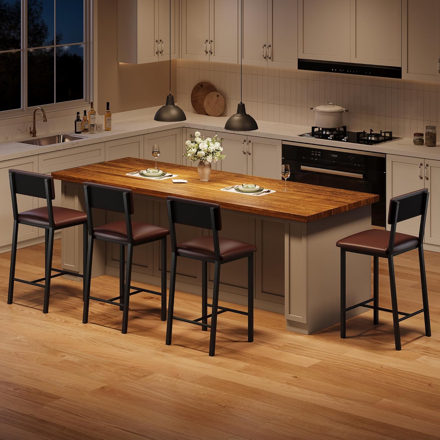 - Attractively Designed and Low Maintenance: This set of 4 bar stools is crafted with upgraded waterproof PU leather that offers excellent resistance to water and stains from daily use, greatly improving both practicality and longevity. In addition, the sturdy painted metal frame provides strong structural support while adding to the overall aesthetic appeal, making these stools both stylish and functional in any environment.