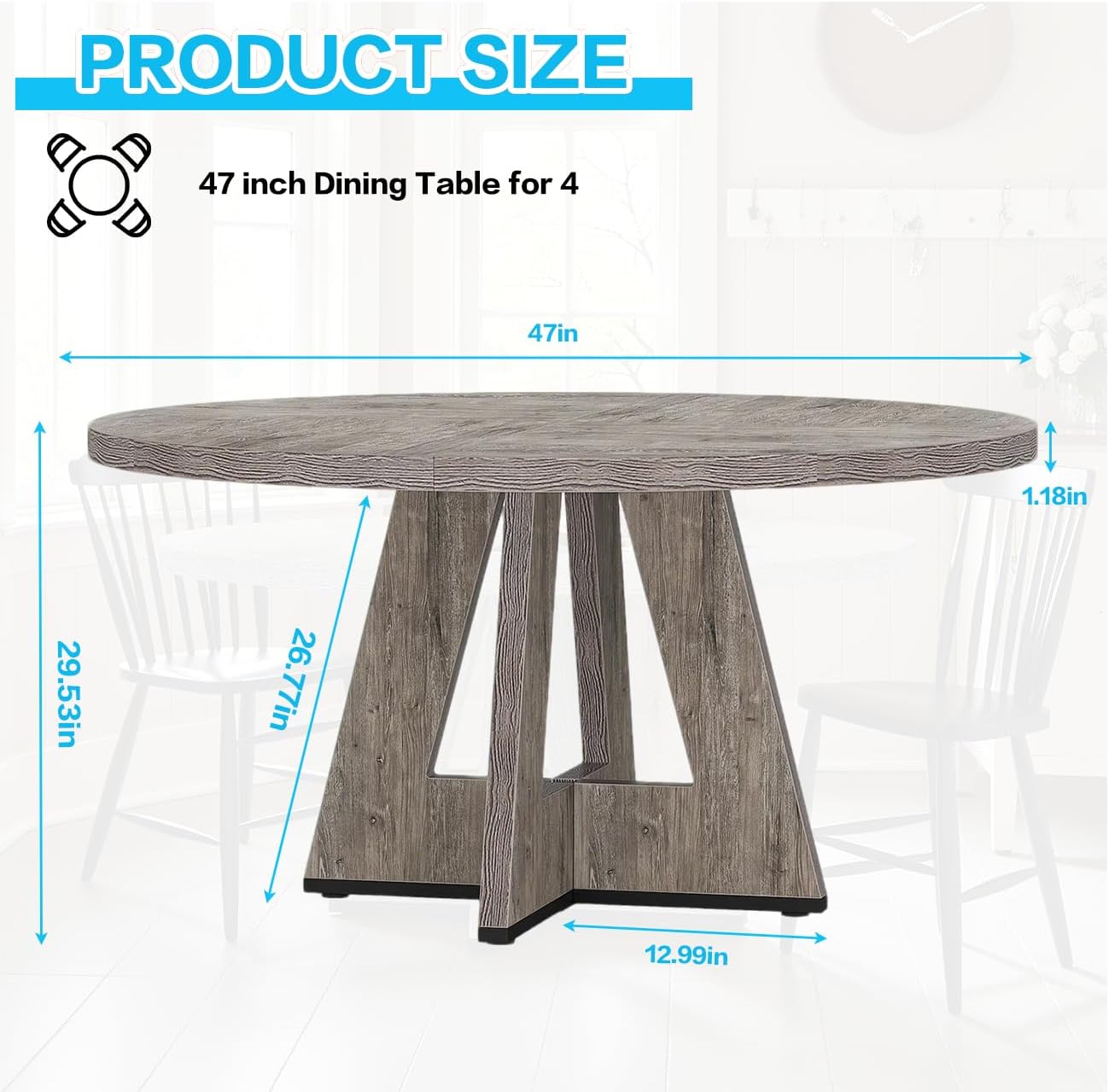 47" Round Dining Table for 4-6, Modern Dinner Table Farmhouse Round Small Kitchen Tables with Wooden Cross Base for Dining Room, Kitchen, Living Room, Gray