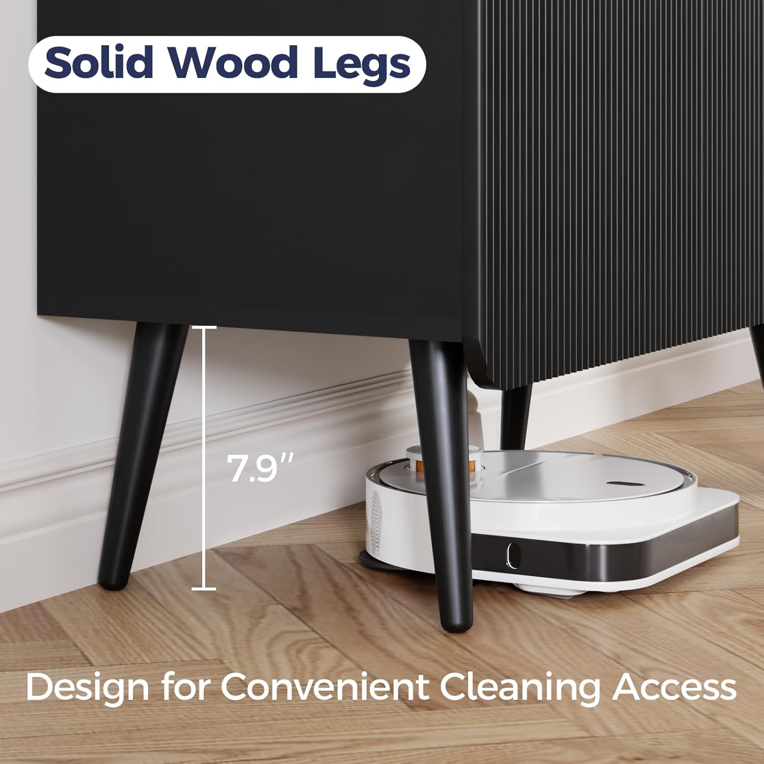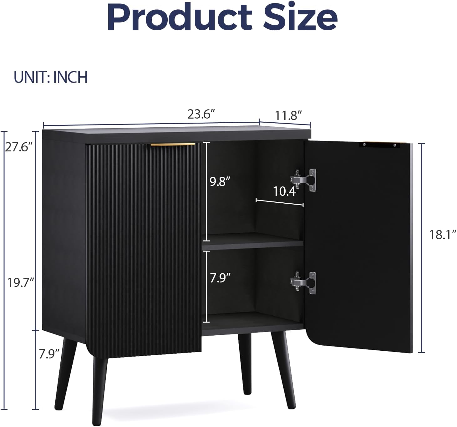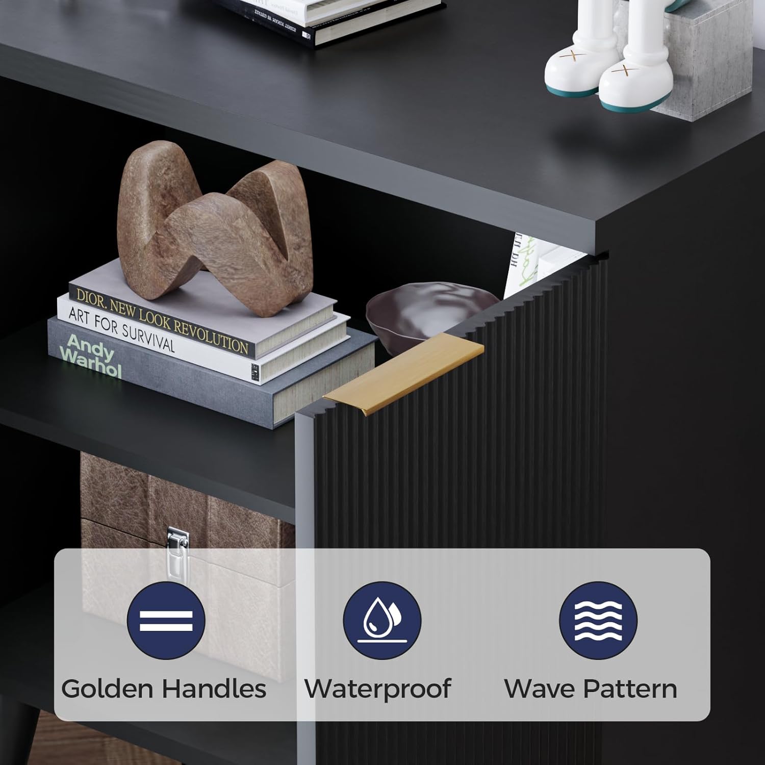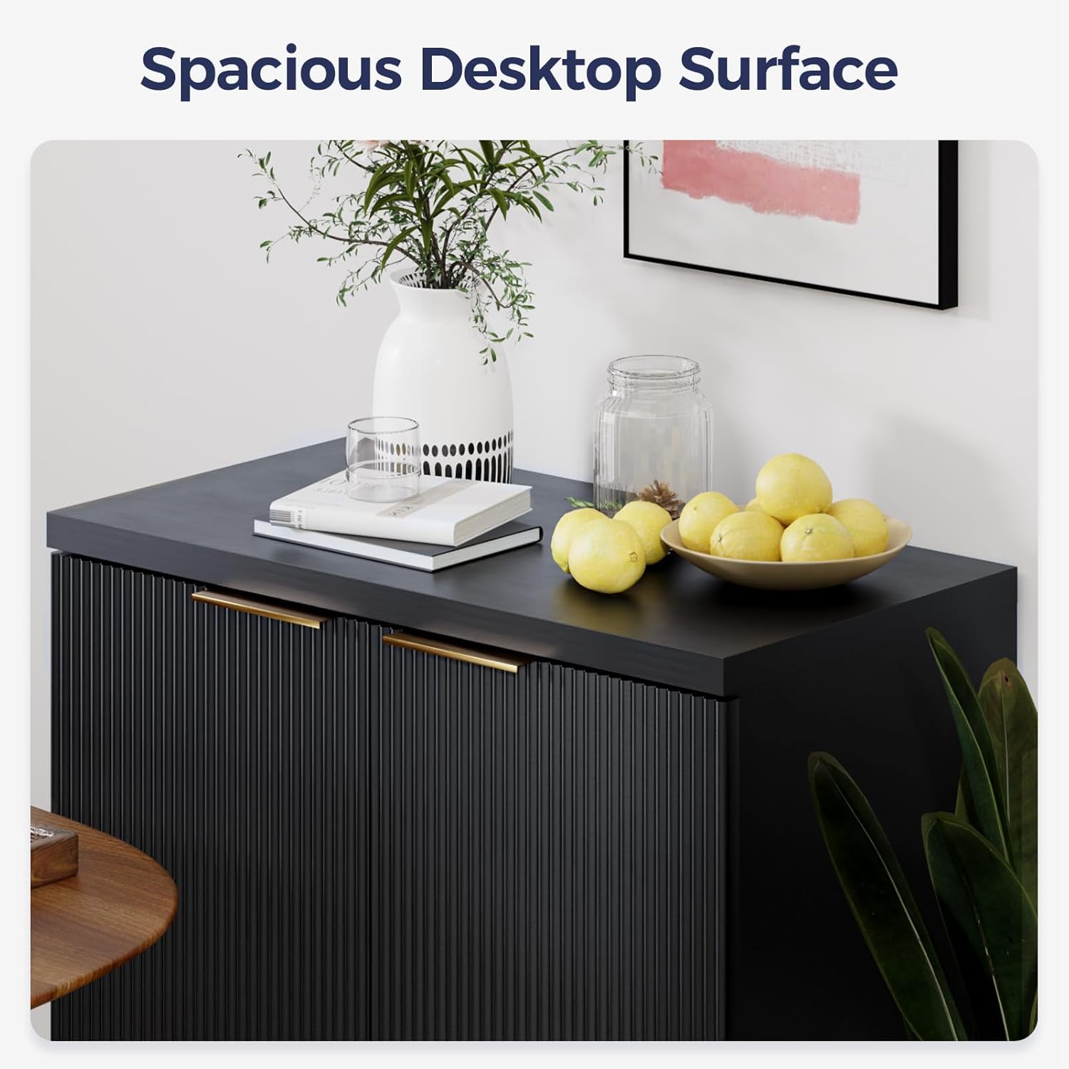 Fluted Buffet Cabinet – Modern Wood Sideboard with 2-Doors & Shelves, Multifunctional Storage Cabinet & Credenzas for Entryway, Dining & Living Room, Black
