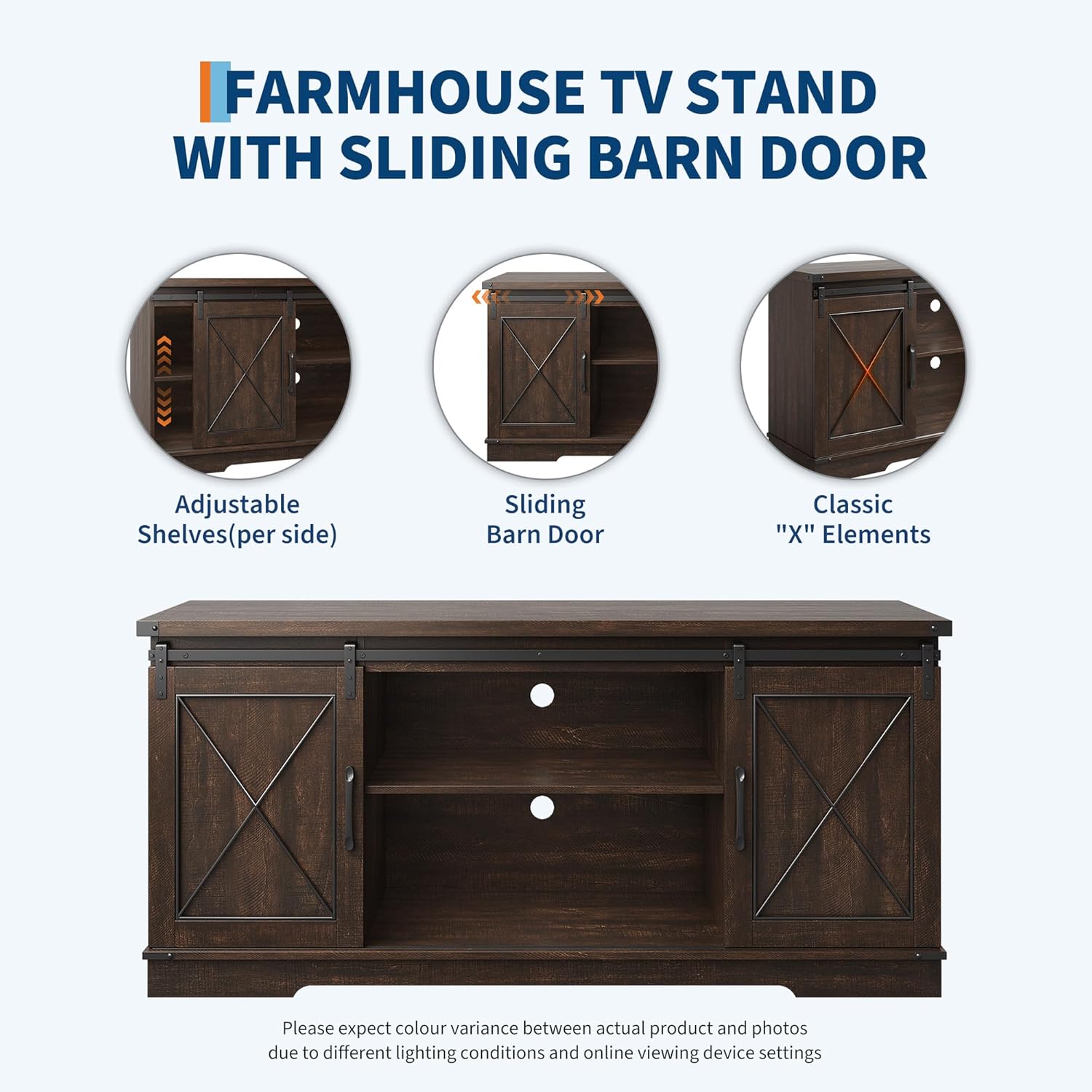 - Versatile farmhouse style TV stand: Brown TV stand features double sliding barn doors with classic "X" elements and a retro Brown finish, this TV stand for bedroom adds a natural