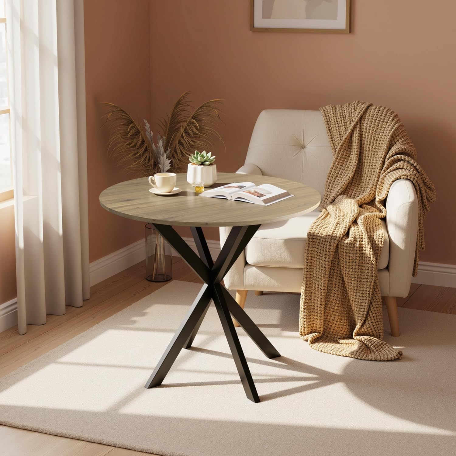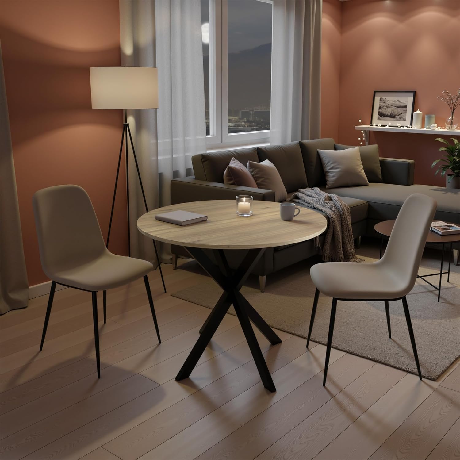 - Spacious Seating for Four: This 31.5-inch round dining table seats four people at a time. It provides a comfortable and inviting space for family dinners and gatherings with friends. The sleek, rounded design eliminates the sharp corners of traditional square tables, allowing diners to interact easily and intimately.