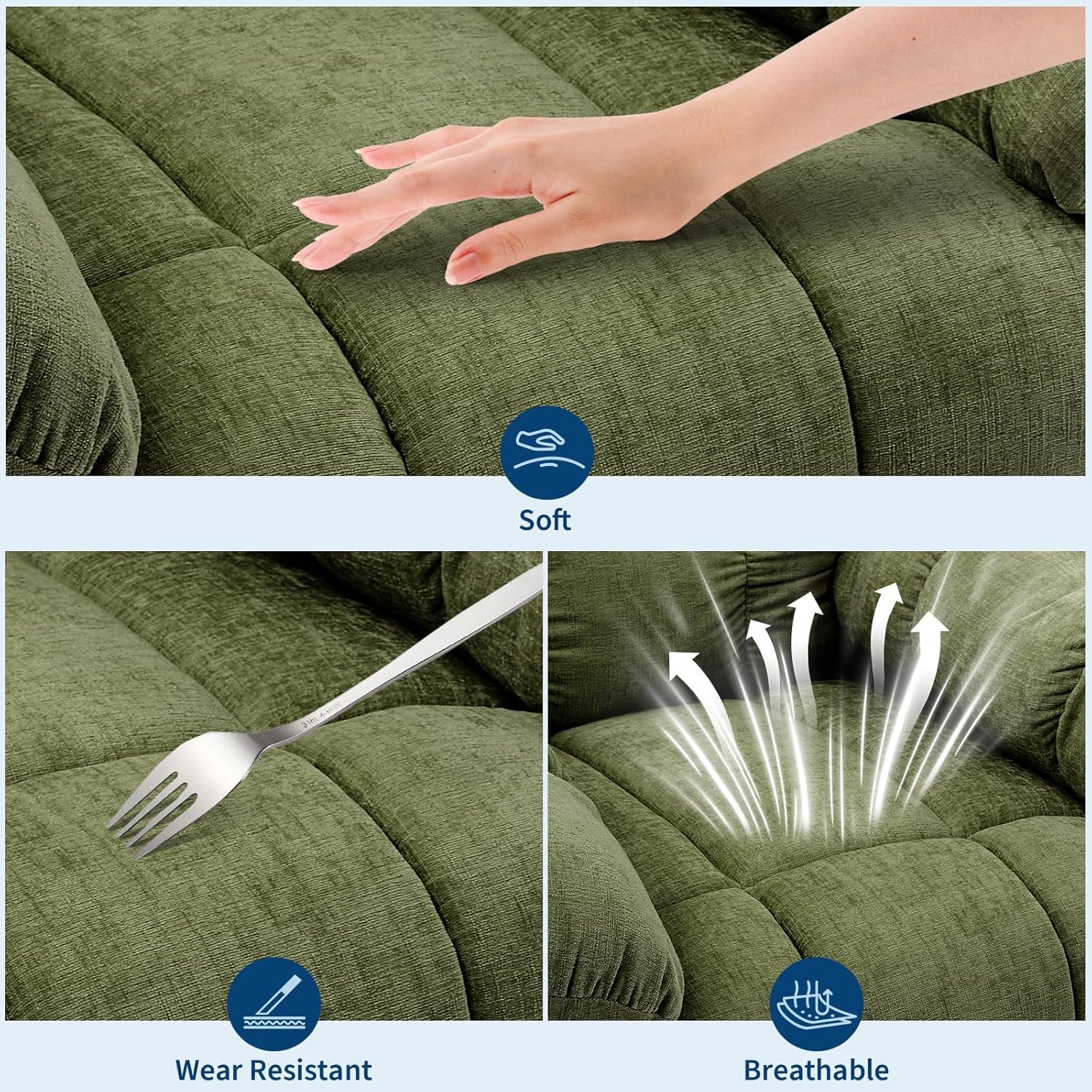 - Massage & Lumbar Heating – Designed for ultimate relaxation, this recliner features 8 vibration massage points in the back, lumbar, thighs, and legs. Use the remote to adjust intensity to your needs. The soothing lumbar heating function promotes blood circulation, reduces fatigue, and melts away daily stress.