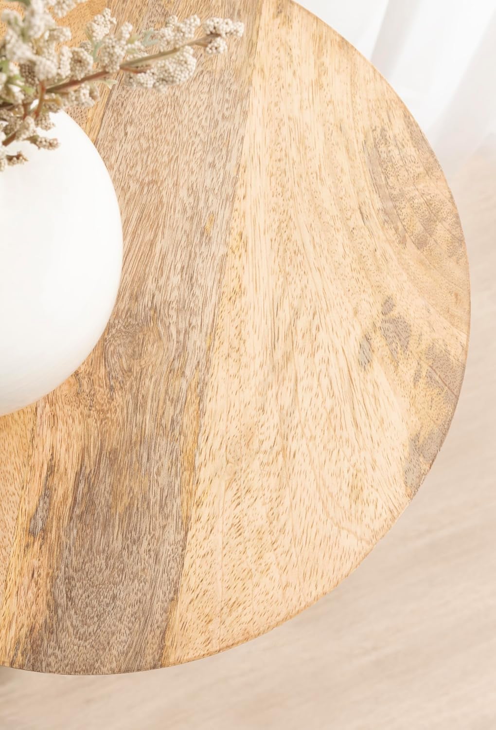 - Quality Circle Tea Table: The Talcott bedside table is handcrafted in India out of solid mango wood, and each piece has a distinct woodgrain for a decorative accent that is uniquely yours