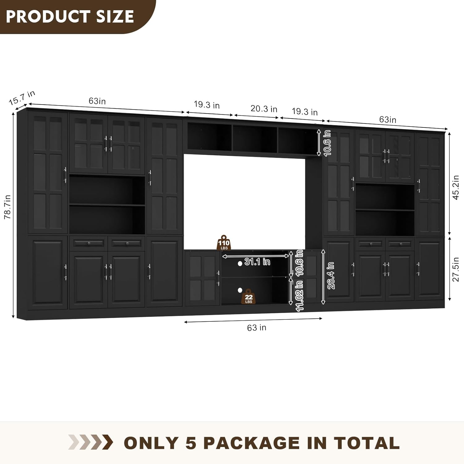 - Reasonable Dimensions: This Large entertainment wall unit with LED light overall size: 189" Wx15.7" Dx78.7" H for TVs up to 75", accommodating entertainment essentials
