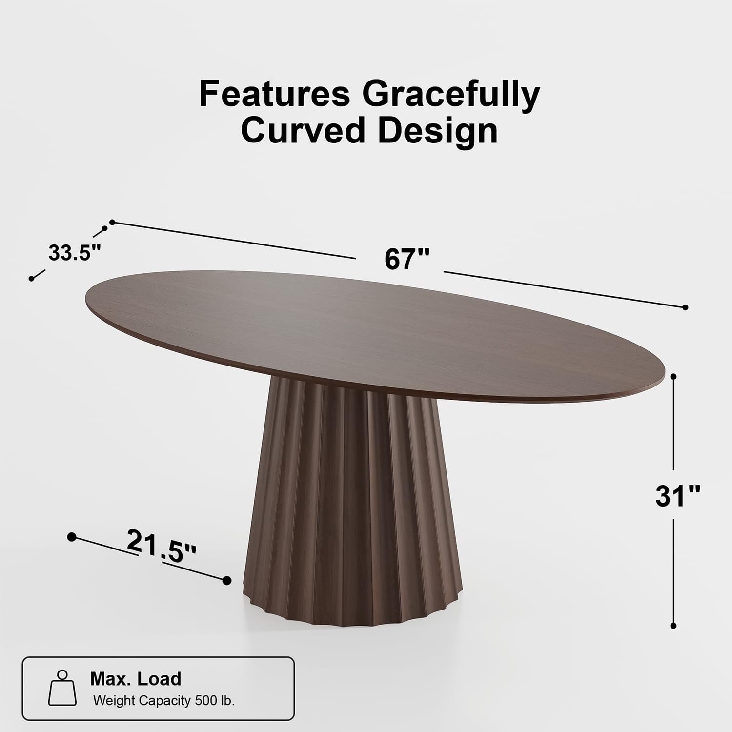 Casaphoria 67" Oval Dining Table, Modern Wood Kitchen Table with Cone Shaped Strip Convex Base for Living Room & Dining Room, Easy Assembly Farmhouse Furniture for 4-6, Walnut
