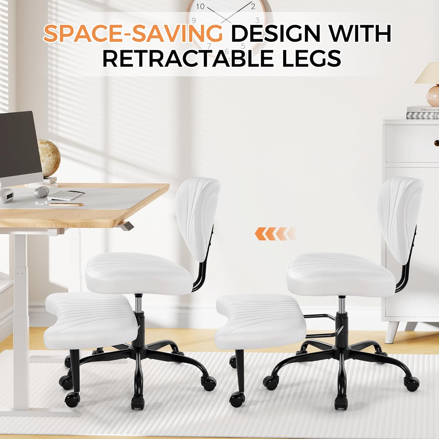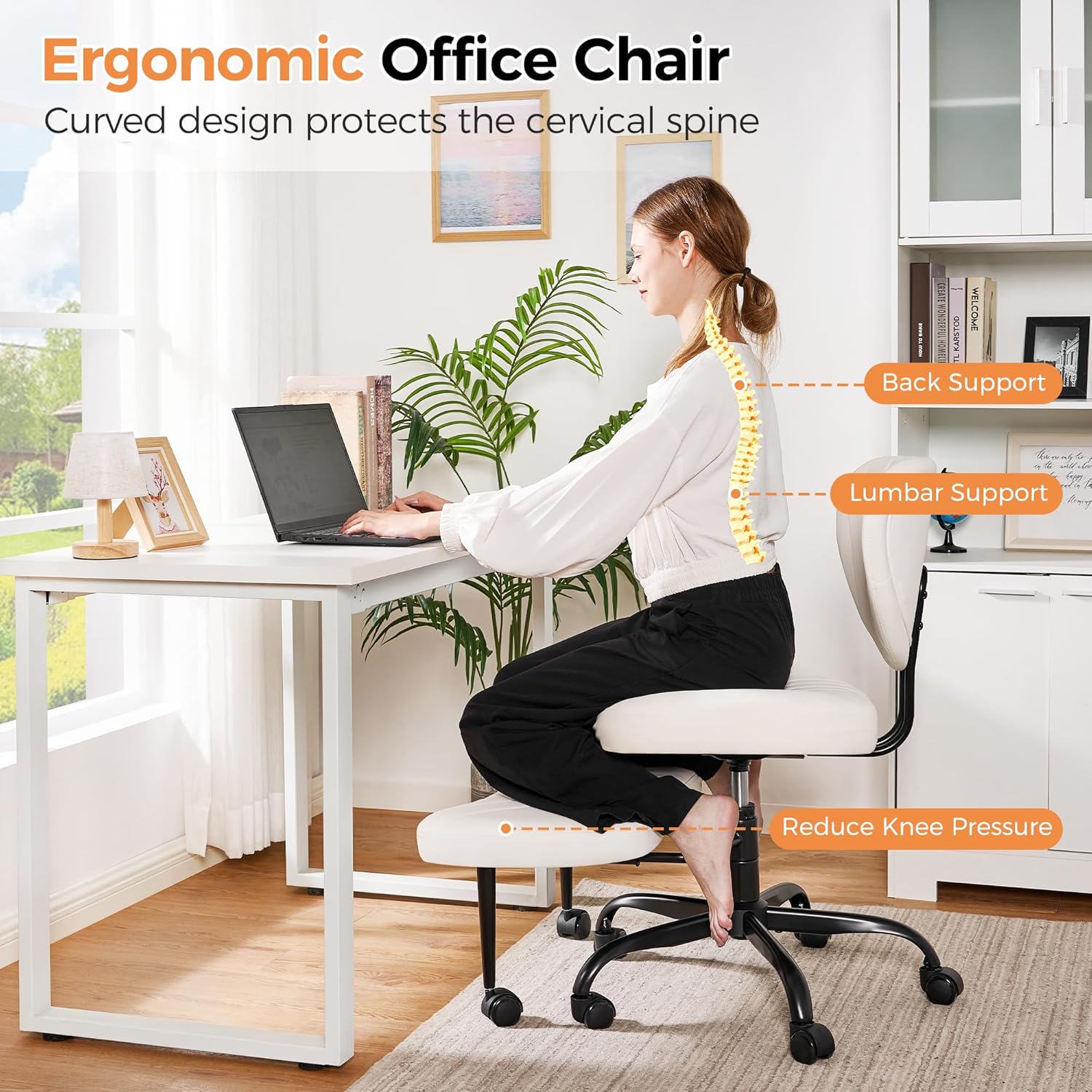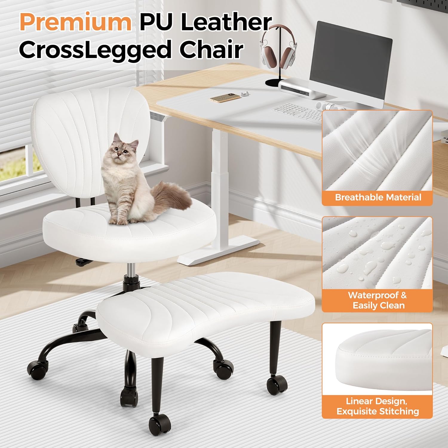 Cross Legged Office Chair, Ergonomic Criss Cross Chair with Wheels, 360° Swivel Height-Adjustable Meditation Chair for Yoga & ADHD, Wide Kneeling Chair with Strong Lumbar Support (White) BPY01W