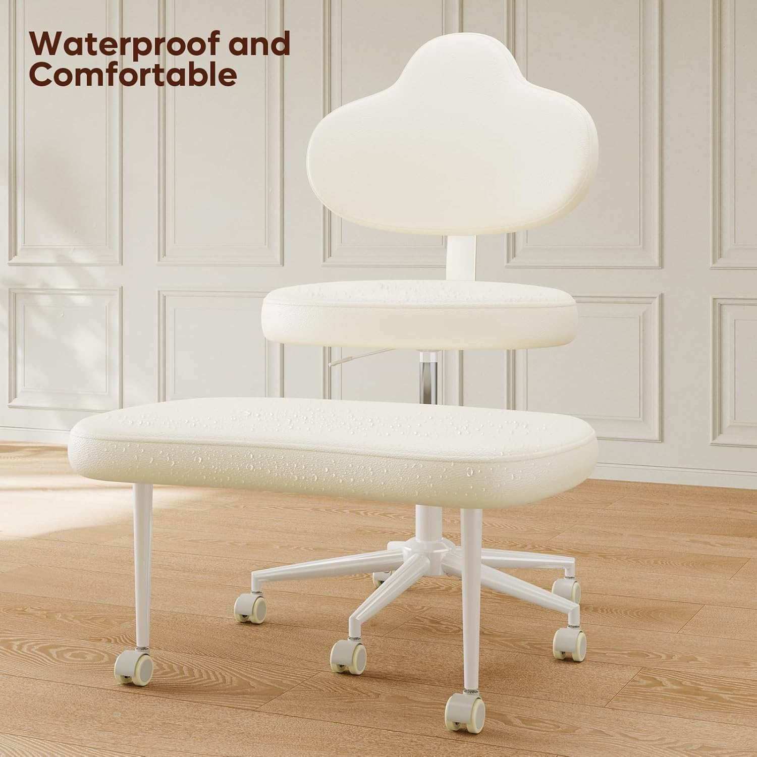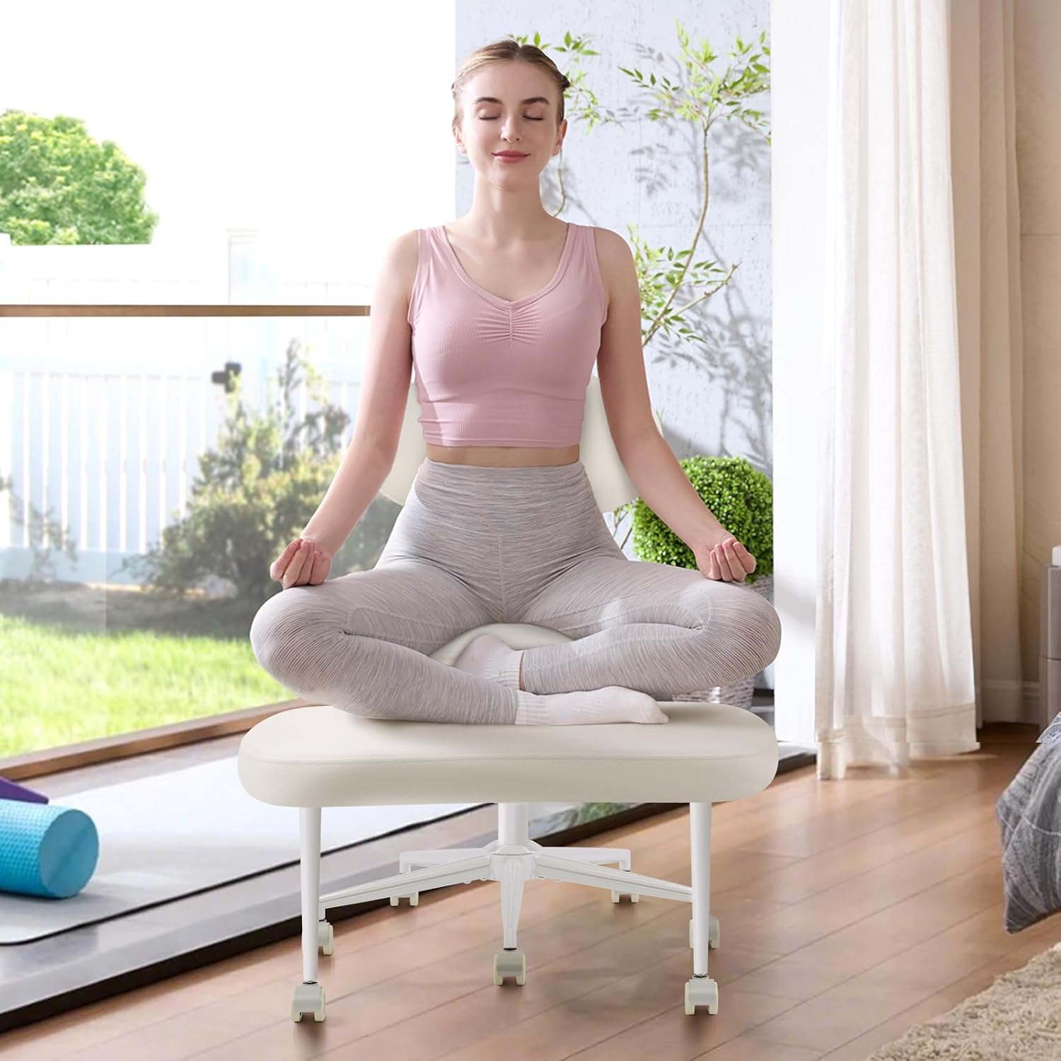 Cross Legged Office Chair with Wheels, Meditation Chair, ADHD Chair for Adults, Wider Height Adjustable Backrest and Seat, Yoga Office Chair, PU Leather, Beige
