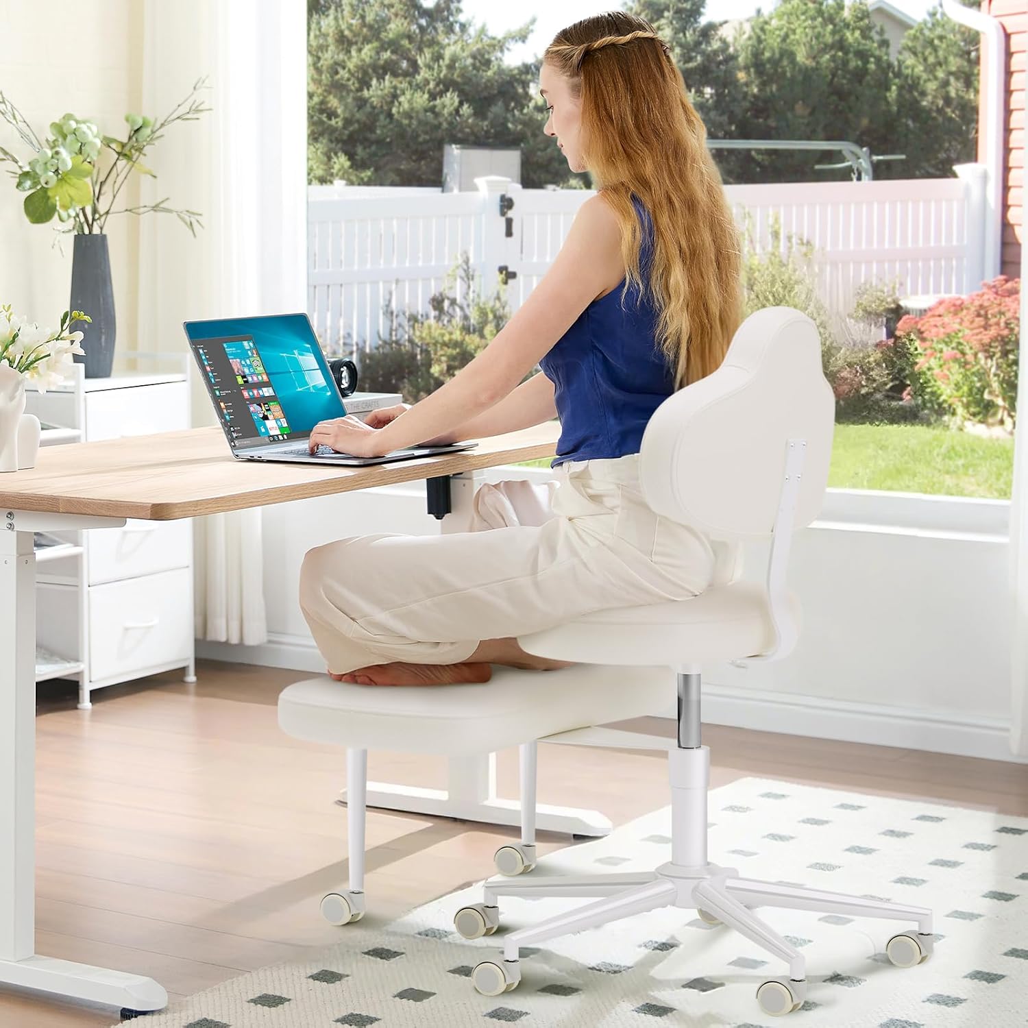 - 【Ergonomic Office Chair】 This ergonomic cross-legged office chair offers comfortable back support for a healthy posture during work or meditation. It helps relax your body, improve circulation, and reduce leg swelling or numbness from prolonged sitting. It also alleviates stress and tension, making it ideal for ADHD or needing frequent position changes.